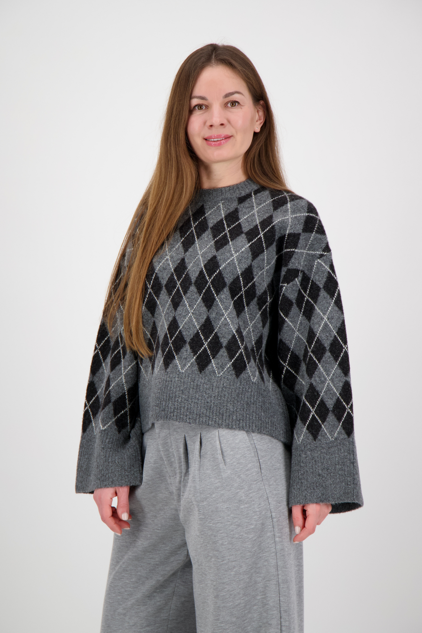 Neo Noir - Kick Check Knit Blouse - Antracit