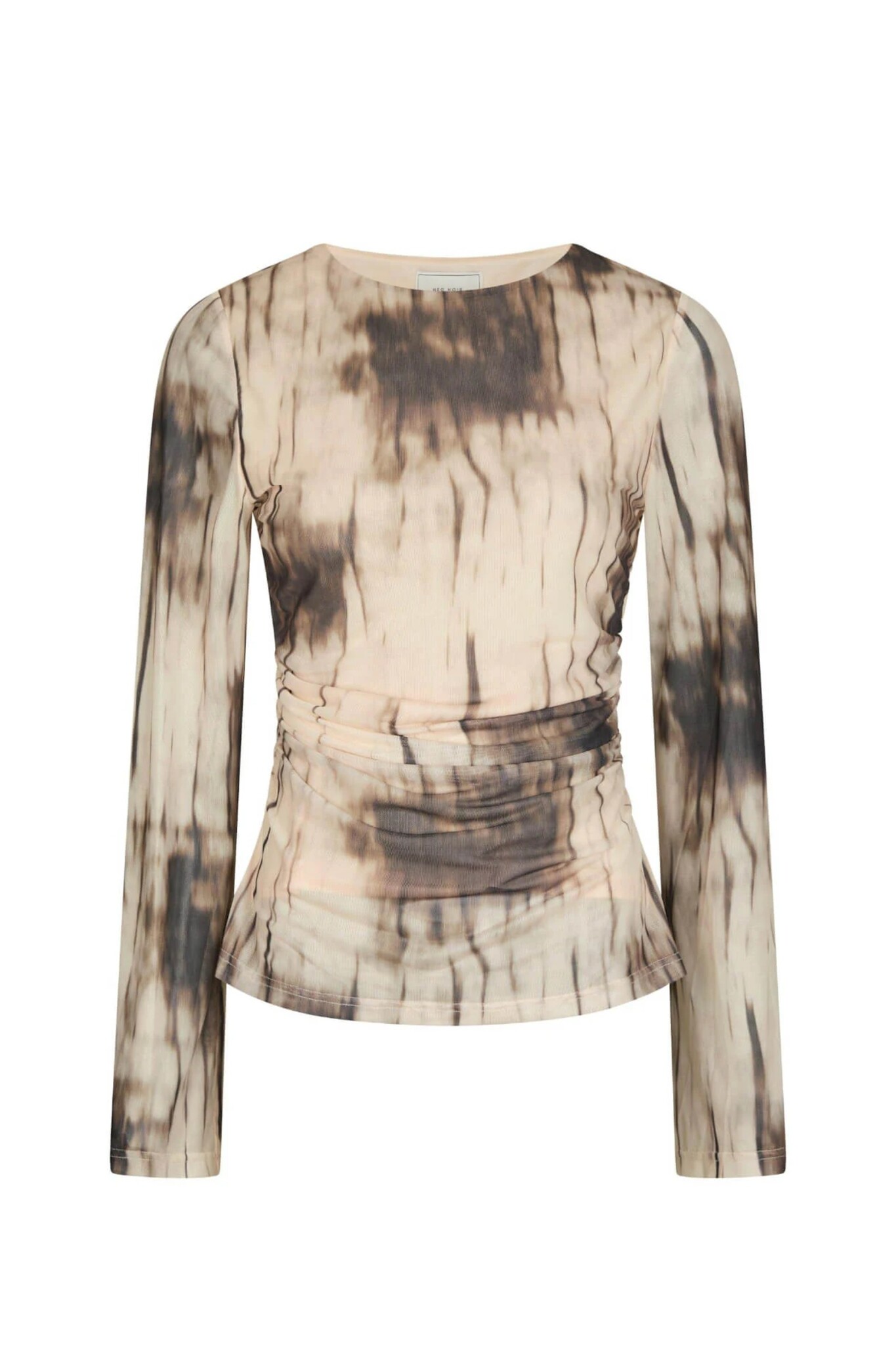 De Lenida Faded Mesh Blouse van Neo Noir is een opvallende en trendy top. Deze blouse in de kleur Dusty Brown is gemaakt van een semi-transparante mesh stof. Het item heeft een dynamische strepen en vlekkenprint in de kleuren bruin en beige. De blouse heeft een klassieke ronde hals, lange mouwen en is getailleerd voor een flatterende pasvorm. De term 'Faded' suggereert een subtiel vervaagde, vintage look.