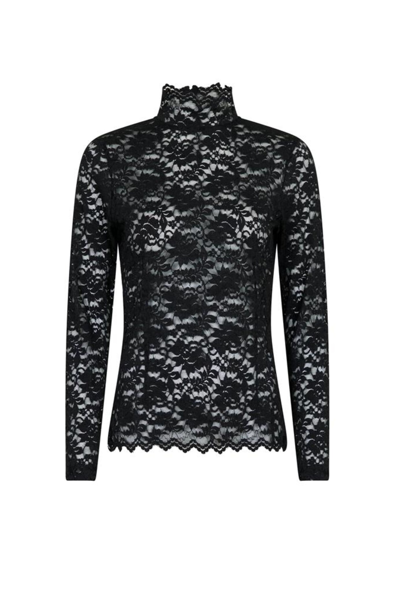 De Liza Laceflower Blouse van Neo Noir is een verfijnde en vrouwelijke top met een romantische uitstraling. Deze kanten top in tijdloos Black is uitgevoerd in een prachtig bloemenpatroon van kant. Het model heeft een aangesloten pasvorm die het silhouet mooi accentueert en is voorzien van een elegante hoge hals en lange mouwen. Een perfect item om zowel chic op een pantalon als stoer op een jeans te dragen.