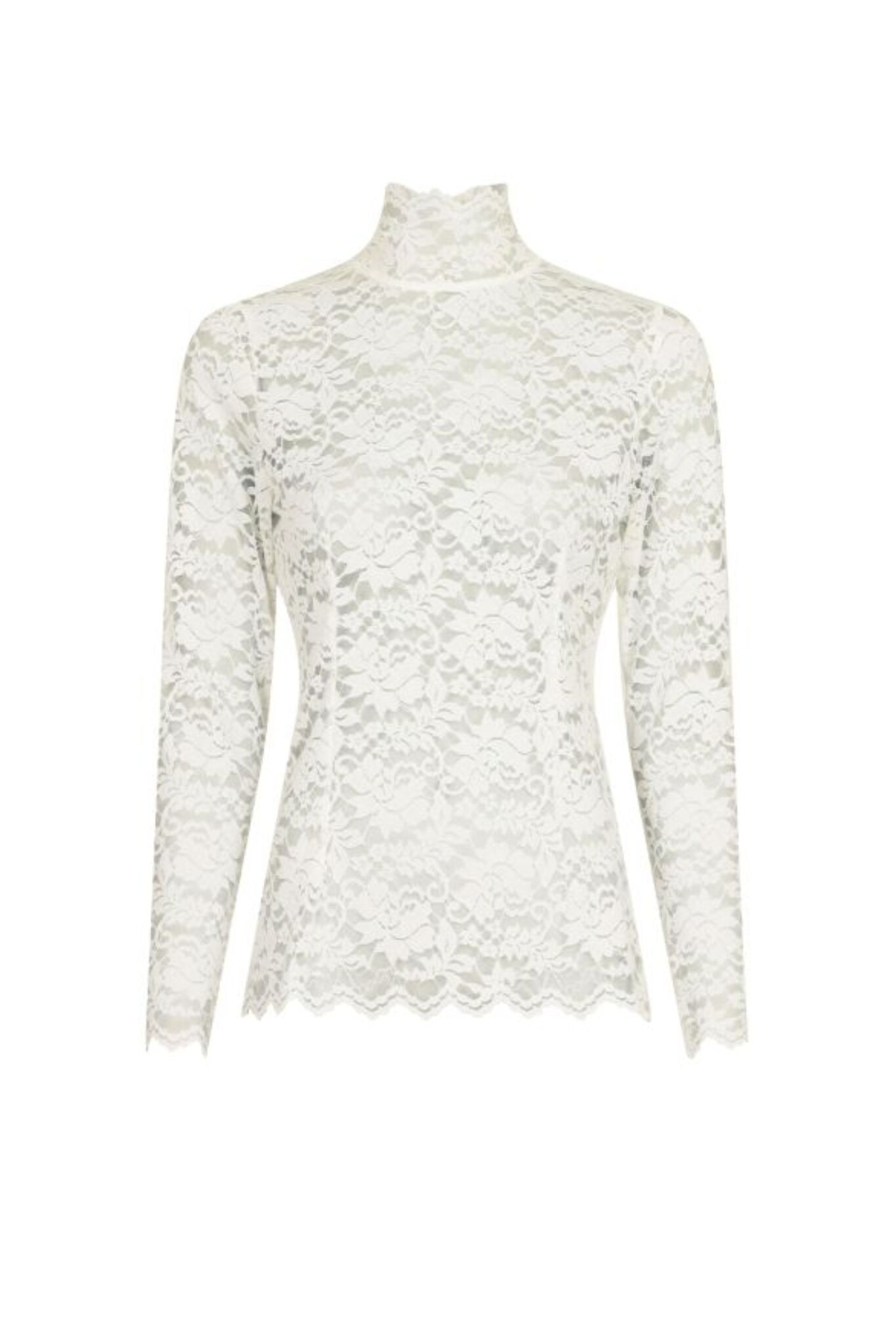 De Liza Laceflower Blouse van Neo Noir is een prachtige, vrouwelijke top met een romantische uitstraling. Deze blouse in een elegante Creme kleur is volledig uitgevoerd met een verfijnde kanten bewerking in een bloemenpatroon. Het model heeft een aangesloten pasvorm die mooi aansluit op het lichaam en is voorzien van een stijlvolle hoge hals en lange mouwen. Deze kanten top is ideaal om als eyecatcher te dragen onder een blazer of gecombineerd met een mooie rok voor een feestelijke gelegenheid.