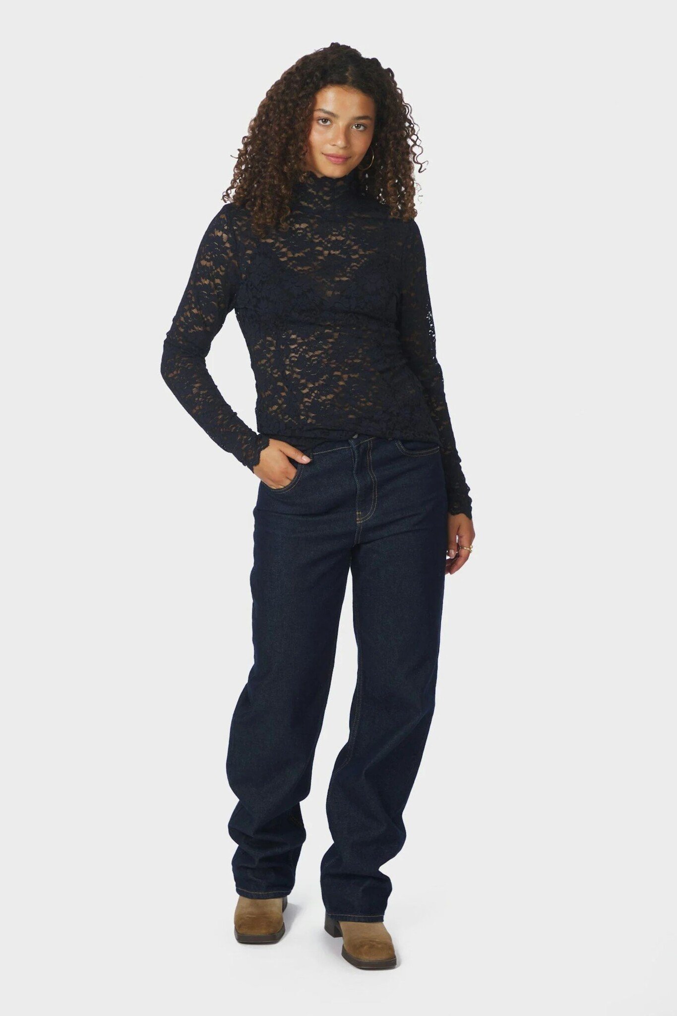 De Liza Laceflower Blouse van Neo Noir is een elegante en vrouwelijke toevoeging aan je garderobe. Deze prachtige kanten top in de diepe kleur Navy heeft een verfijnd bloemenpatroon dat zorgt voor een romantische uitstraling. Het model heeft een aangesloten pasvorm die prachtig aansluit op het silhouet, gecombineerd met een stijlvolle hoge hals en lange mouwen.