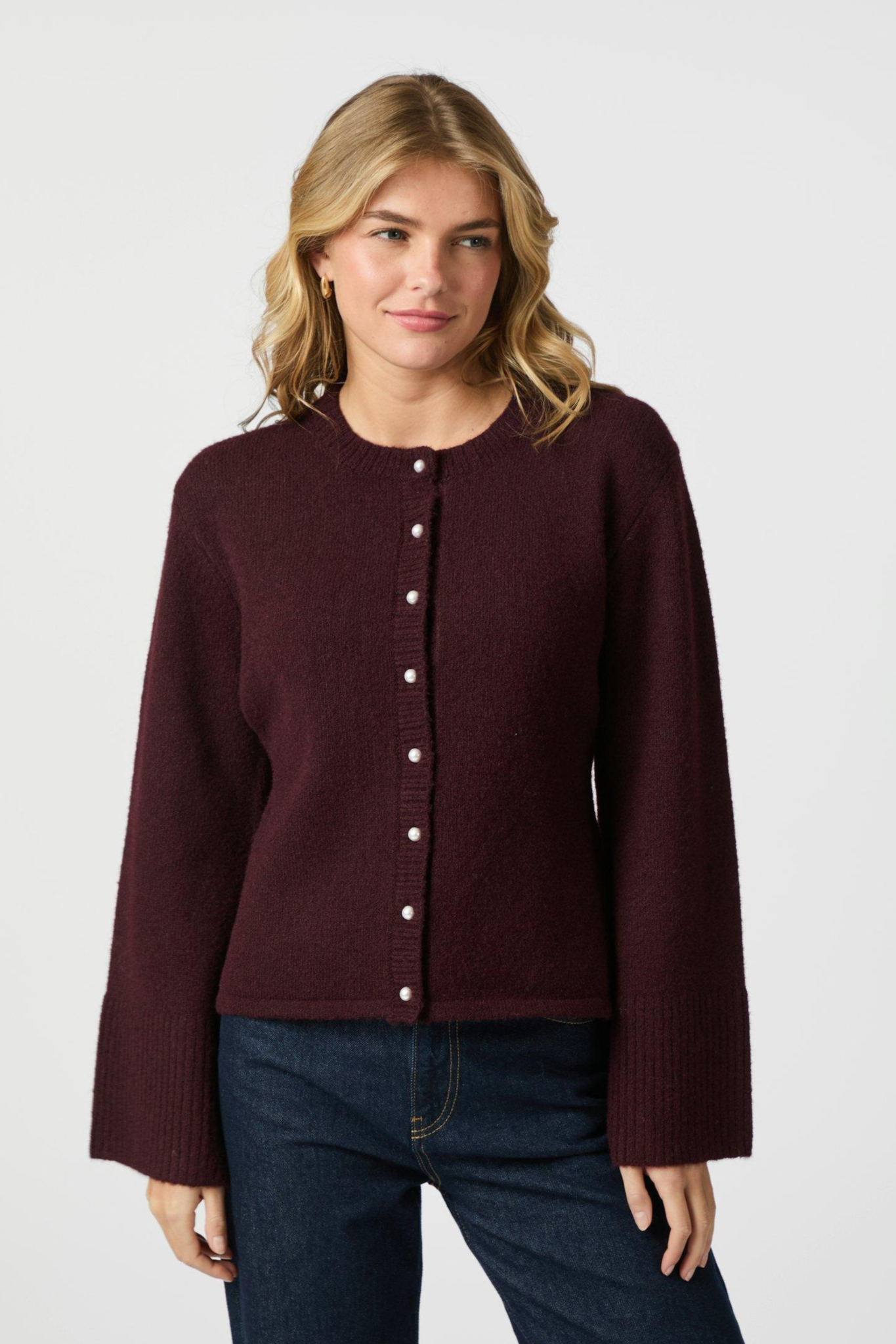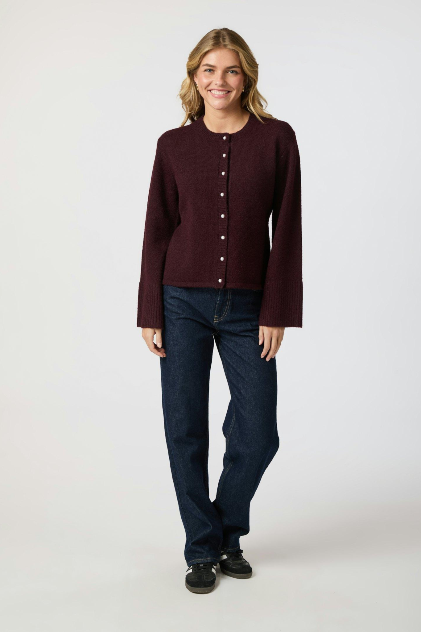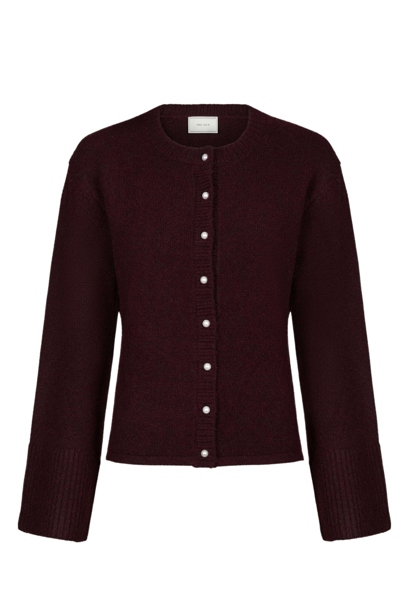 Het vest van het merk Neo Noir is een kort fijngebreid model met een ronde hals en parelmoer knoopjes. Het vest heeft rechte, wijd uitlopende mouwen en een knoopsluiting aan de voorkant.