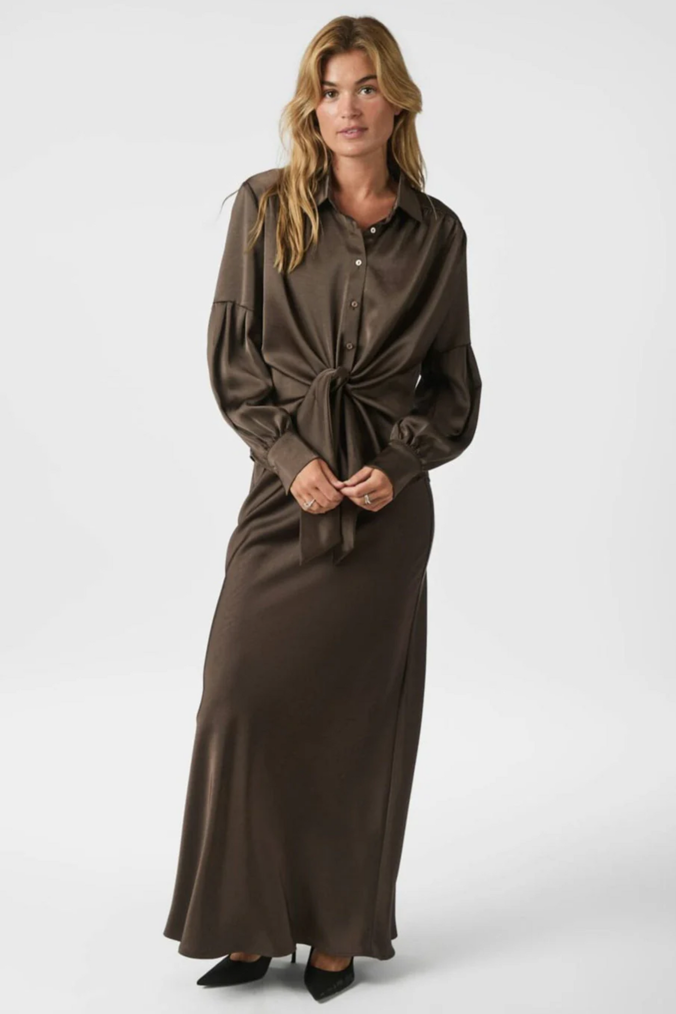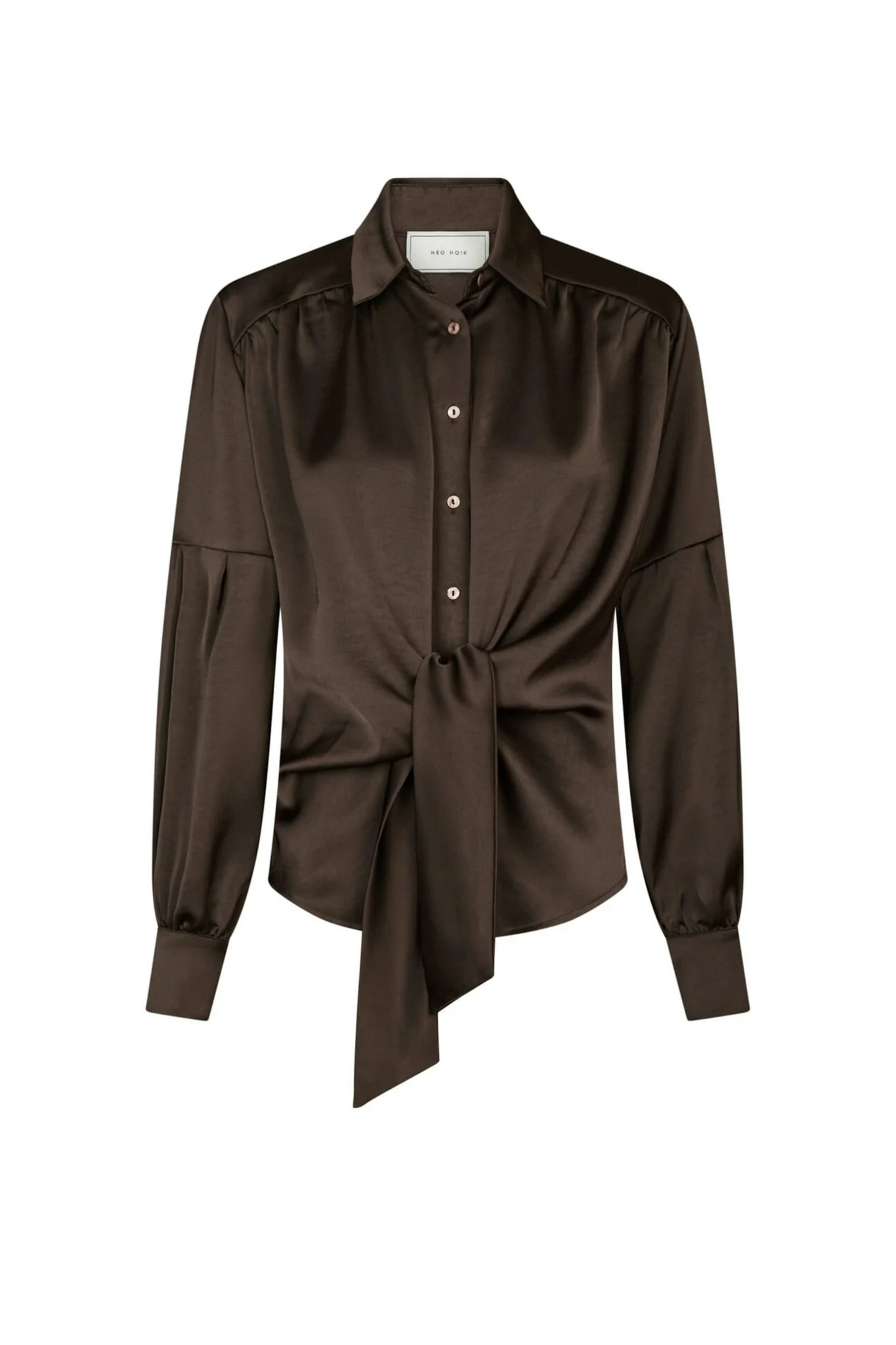 Neo Noir - Naja Satin Shirt - Dark Brown