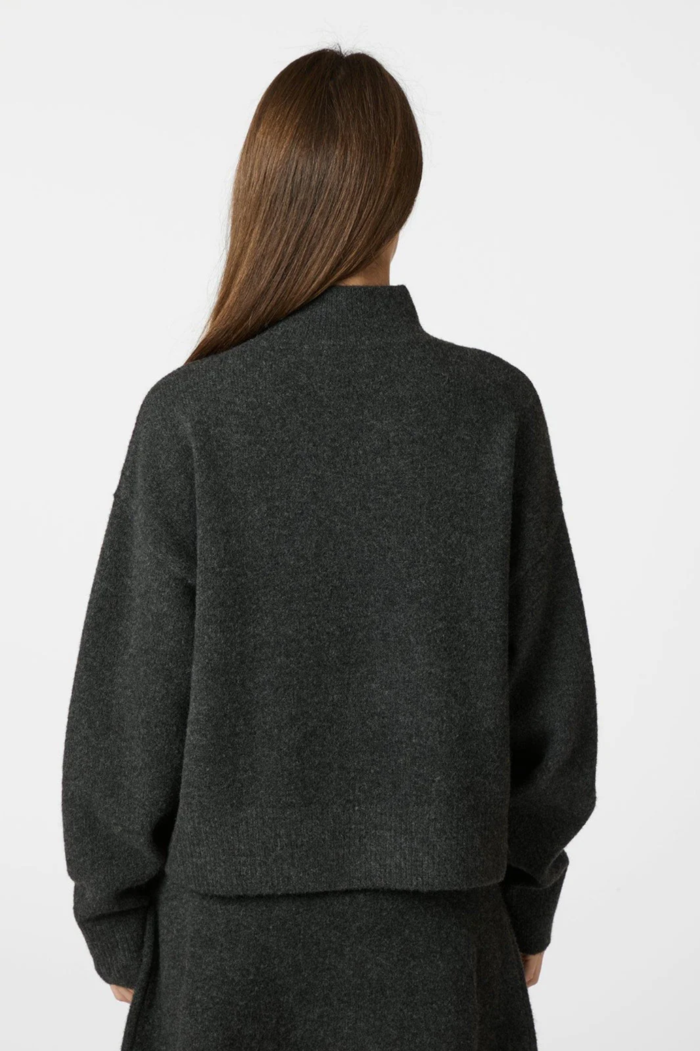 De knit blouse van het merk Neo Noir is een fijngebreide trui met een hoge kraag en lange mouwen. De knit heeft aangesloten manchetten en een ballonvormige pasvorm, wat zorgt voor een comfortabele fit en een stijlvolle uitstraling.