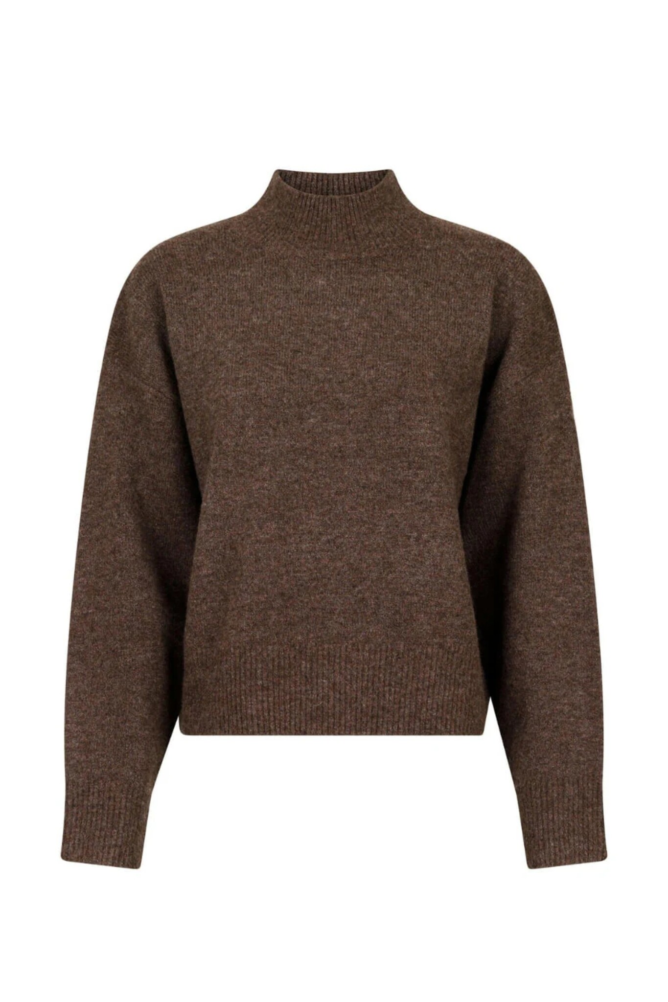 De Paulina Knit Blouse van Neo Noir is een comfortabele en veelzijdige trui. Deze blouse in Brown Melange is gemaakt van een fijn gebreide stof en heeft een relaxed fit voor een nonchalante look. De trui is voorzien van een warme hoge hals en lange mouwen. Het item is netjes afgewerkt met geribde boorden bij de mouwen en zoom.