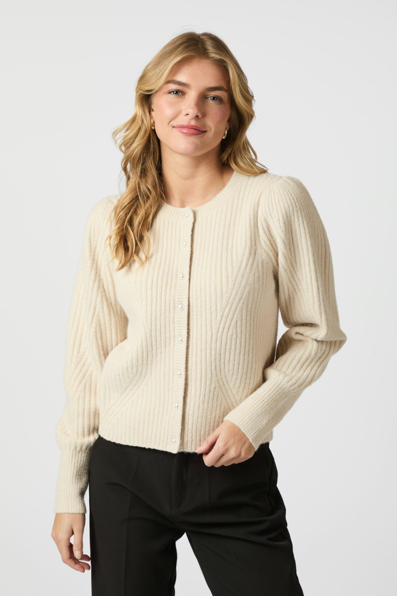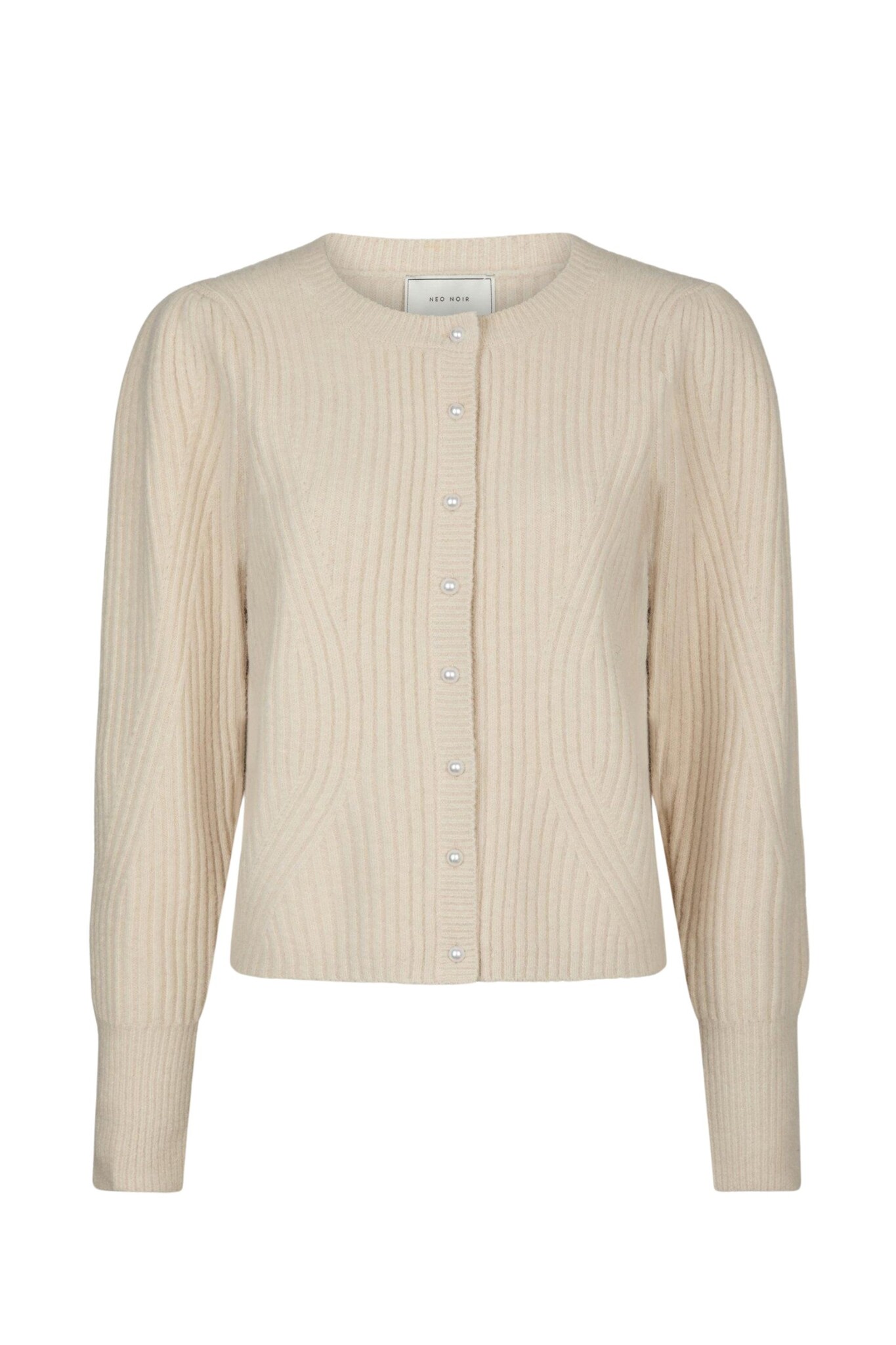 Het vest van het merk Neo Noir is een elegant gebreid kort vest met een ronde hals. Het item is voorzien van een fijn patroon in de stof, parelmoeren knoopsluiting en lange pofmouwen voor een vrouwelijke uitstraling.