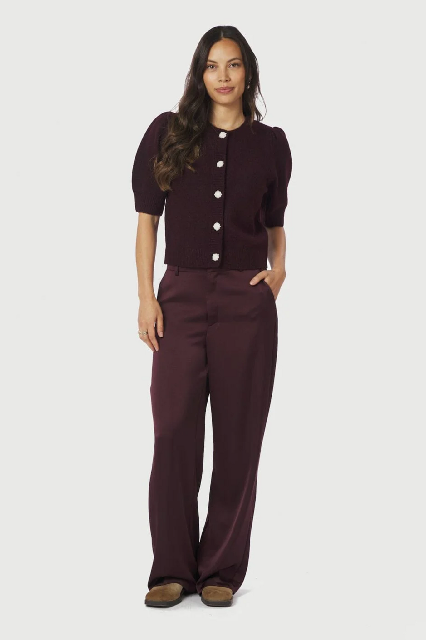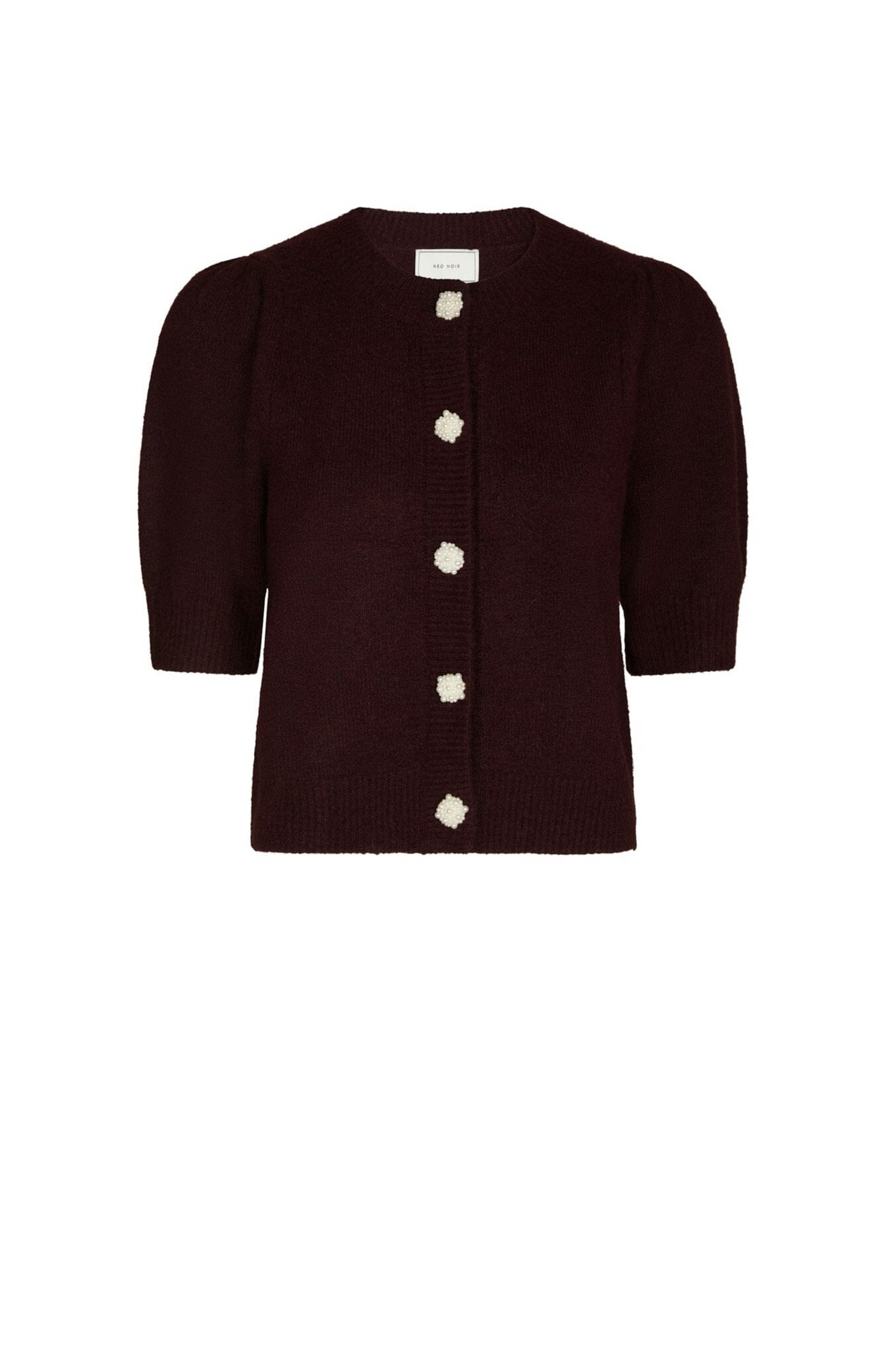 De Trudy Deco Knit Cardigan van Neo Noir is een fijngebreid vest in Wine met een ronde halslijn en korte mouwen. Het item is afgewerkt met een elegante knoopsluiting van pareltjes, wat zorgt voor een verfijnde en vrouwelijke uitstraling. Dankzij het zachte materiaal biedt het vest hoog draagcomfort en is het ideaal voor zowel casual als chique combinaties.