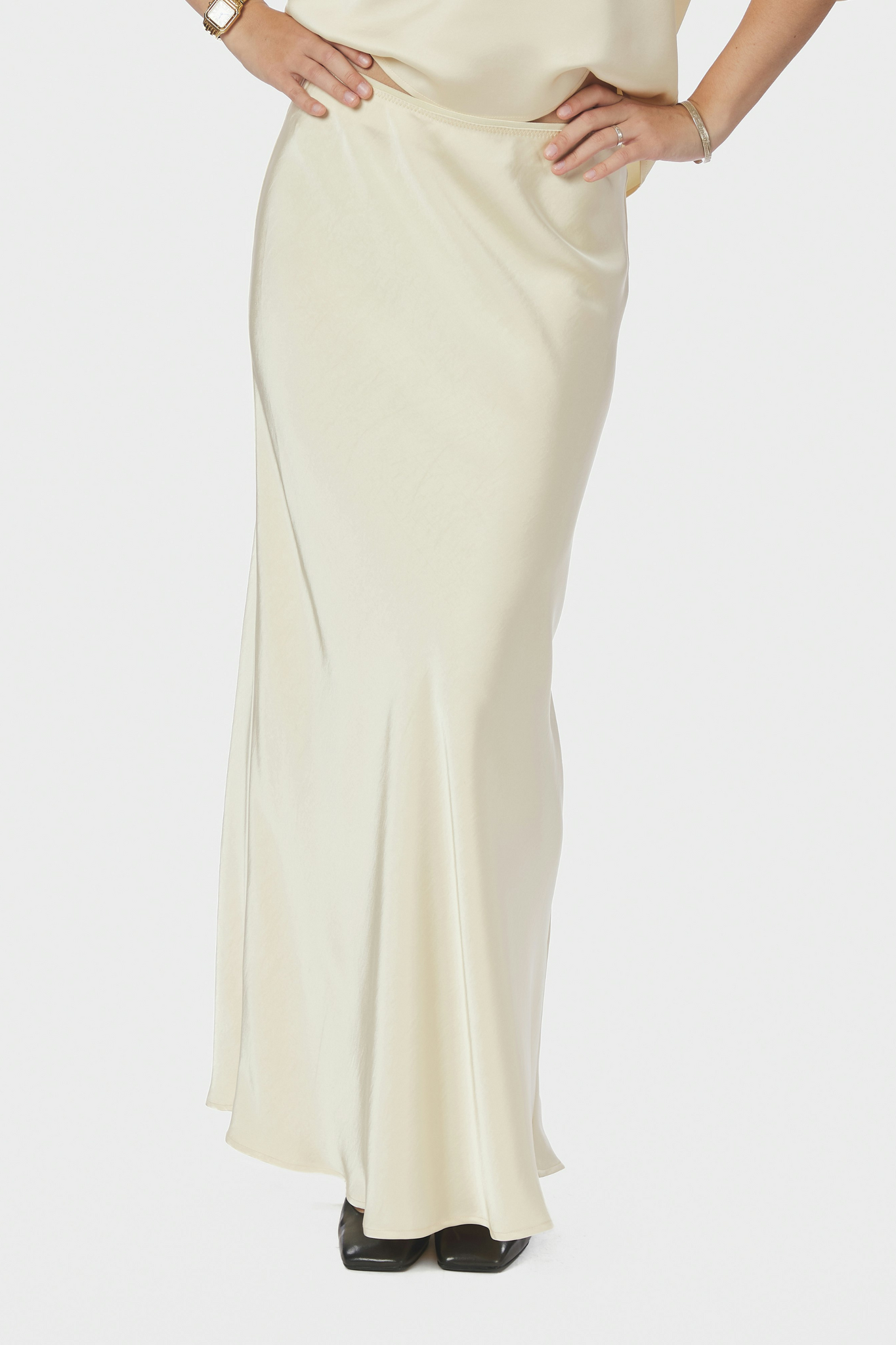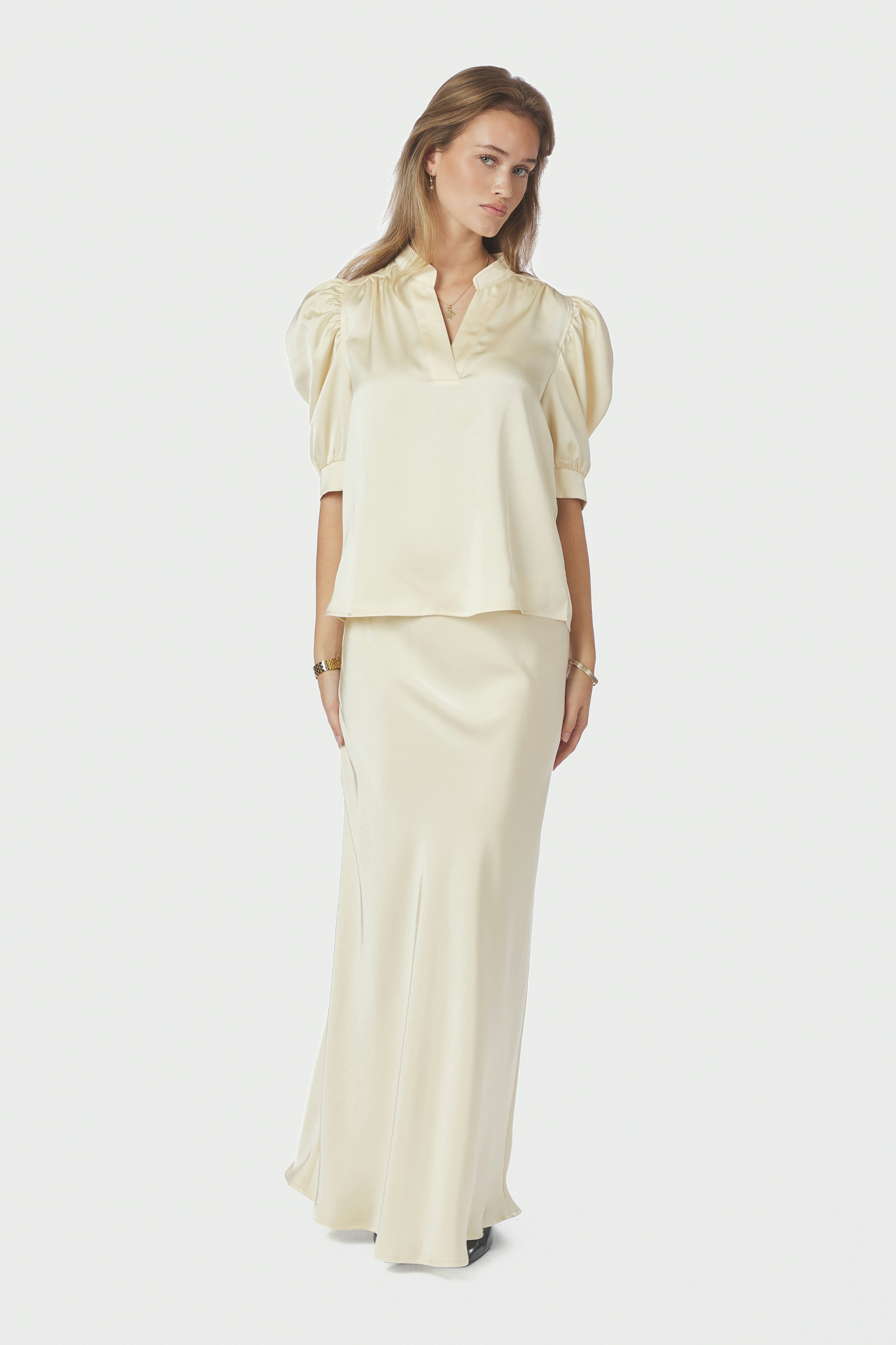 De Vicky Heavy Sateen Skirt van Neo Noir in Light Yellow is een elegante rok uitgevoerd in een zware satijnlook. De rok heeft een elastische tailleband en valt soepel langs het lichaam. Het enkellange model geeft de rok een stijlvolle en vrouwelijke uitstraling.