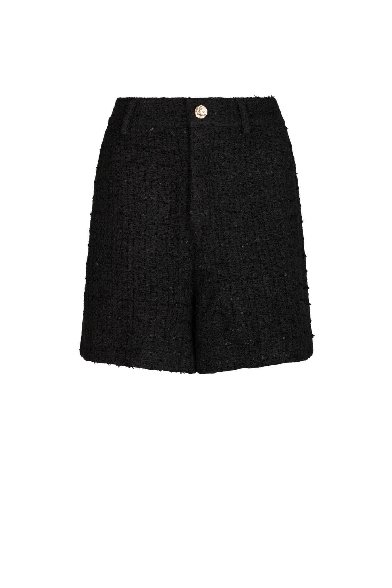 De Zanya Boucle Shorts van Neo Noir is een elegant en comfortabel item in een zwarte kleur. De shorts zijn gemaakt van een verfijnde boucle stof en hebben een elastische tailleband aan de achterkant voor een perfecte pasvorm. Het item is voorzien van riemlussen, steekzakken en een verborgen haak- en ritssluiting aan de voorzijde, afgewerkt met een stijlvolle gouden knoop.