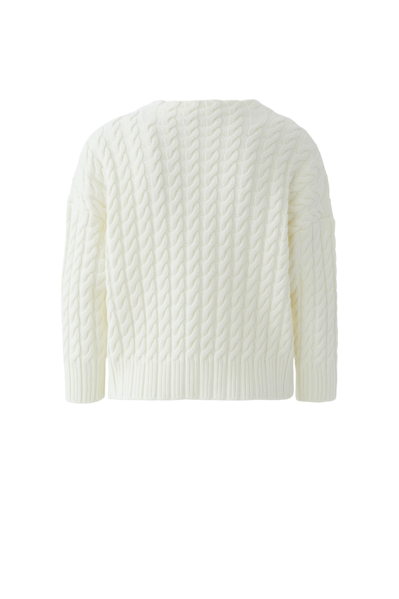 De Oui Flower Pullover in Off-White/Multicolor is een romantische en gedetailleerde gebreide trui die elke outfit direct opfleurt. Dit model kenmerkt zich door een klassiek kabelpatroon en is aan de bovenzijde prachtig versierd met kleurrijke, geborduurde bloemen voorzien van subtiele kralenaccenten. Met zijn ronde hals en comfortabele pasvorm biedt deze pullover een perfecte mix van knusse warmte en een verfijnde, vrouwelijke uitstraling.