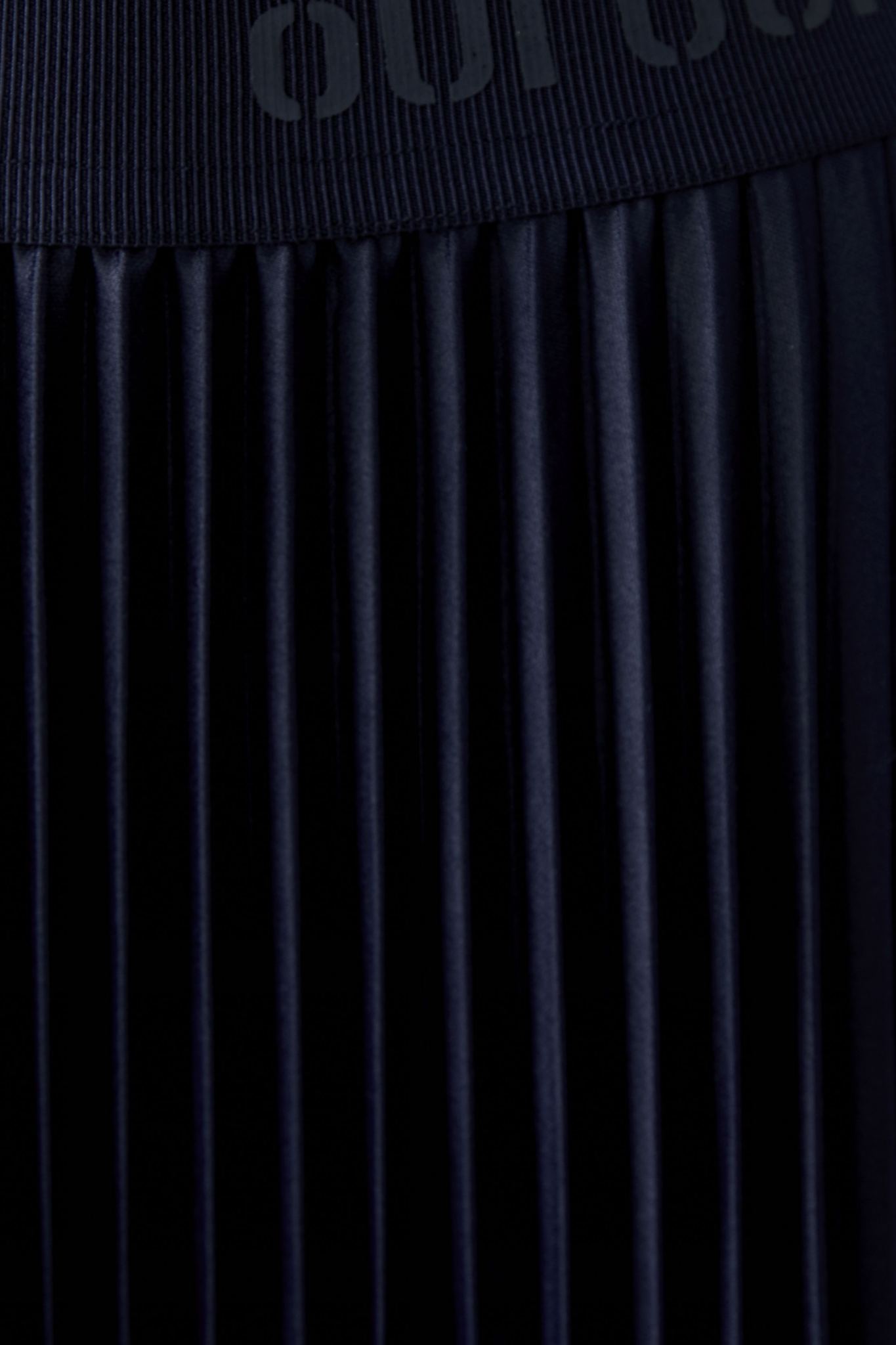 De Pleated Skirt van Oui is een elegante rok in navy met een comfortabele elastische tailleband voorzien van een subtiele logo-opdruk. De plisséplooien beginnen smal aan de bovenzijde en lopen naar beneden toe geleidelijk wijder uit, wat zorgt voor een speels en vloeiend effect.