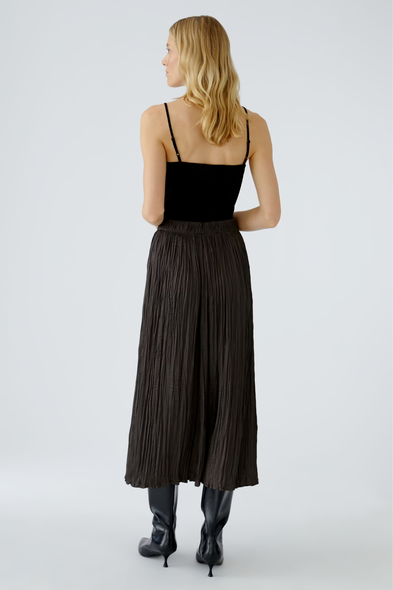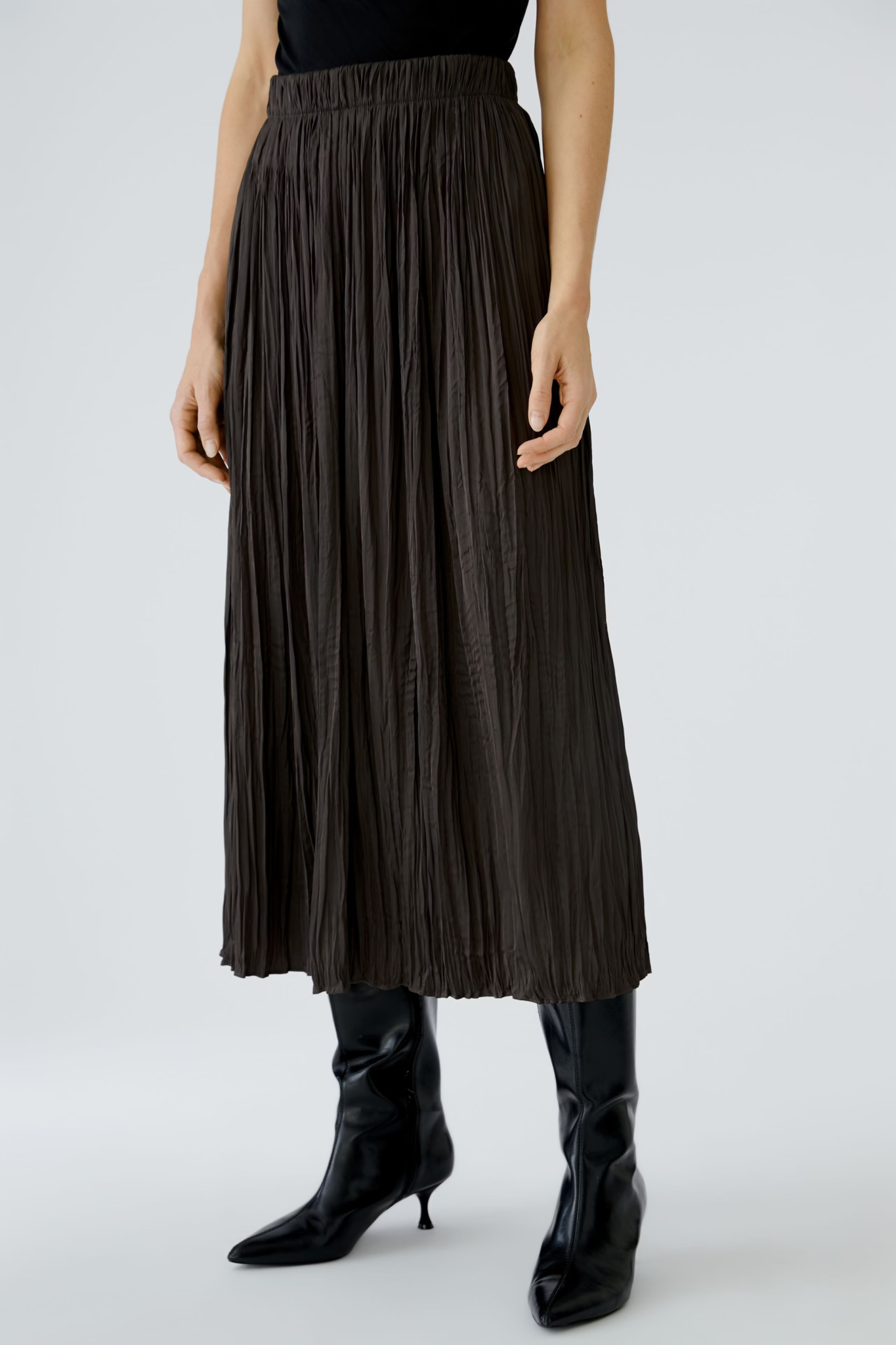 De plissérok van het merk Oui is een elegante, soepelvallende rok met een elastische tailleband. De rok is uitgevoerd in een fijne, bruine-grijze tint en heeft een luchtige structuur door de gelijkmatige plooien. Dankzij de elastiek in de taille zit de rok comfortabel en kun je hem makkelijk combineren met zowel een blouse als een knit.