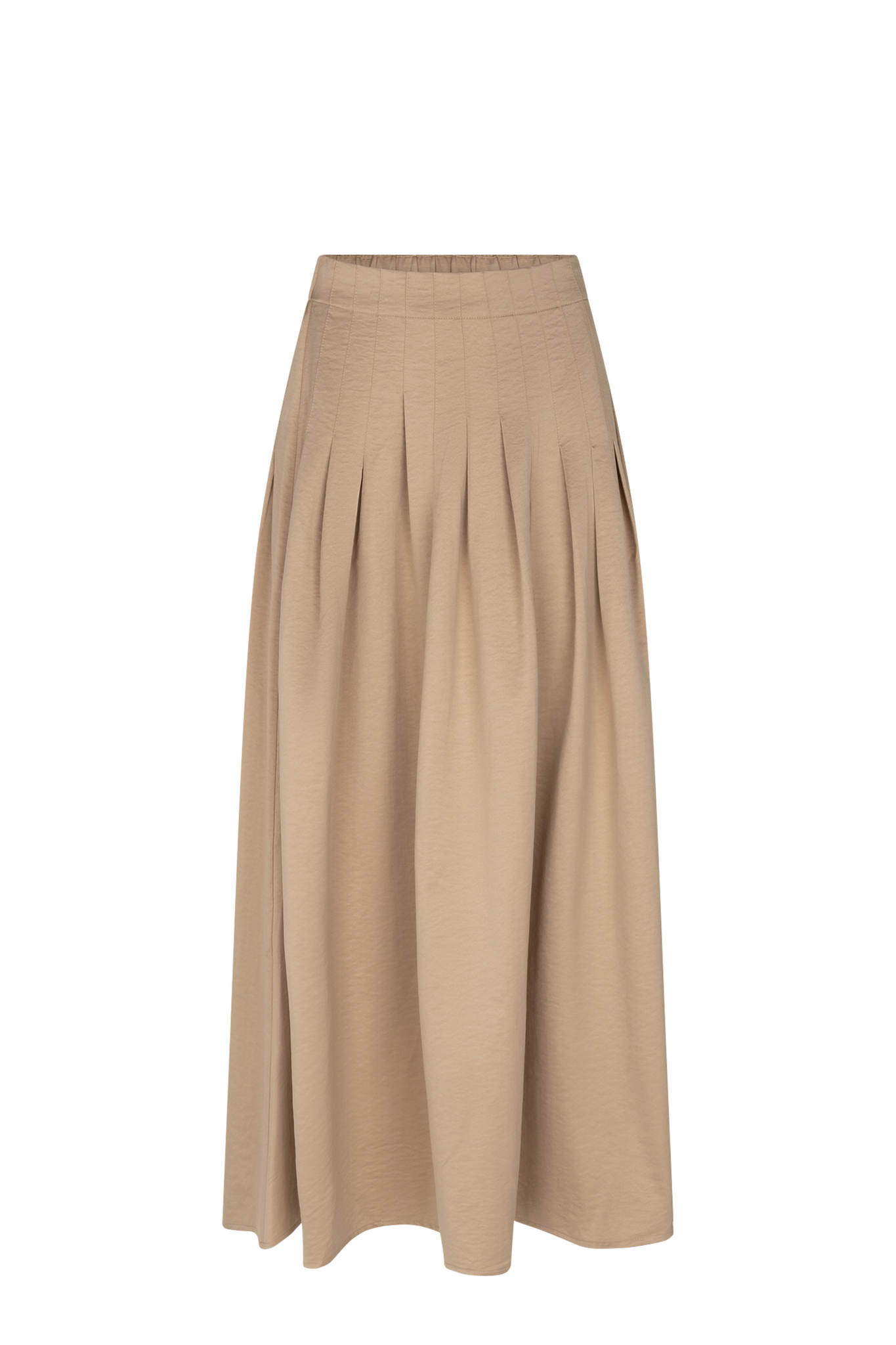 De Cansu Pleated Long Skirt van Ruby Tuesday is een elegante A-lijn maxi-rok met fijne plooien en een elastische taille aan de achterkant voor optimaal draagcomfort. De soepele stof zorgt voor een vloeiende beweging bij elke stap. Perfect te combineren met tops of blouses voor een stijlvolle, vrouwelijke look.