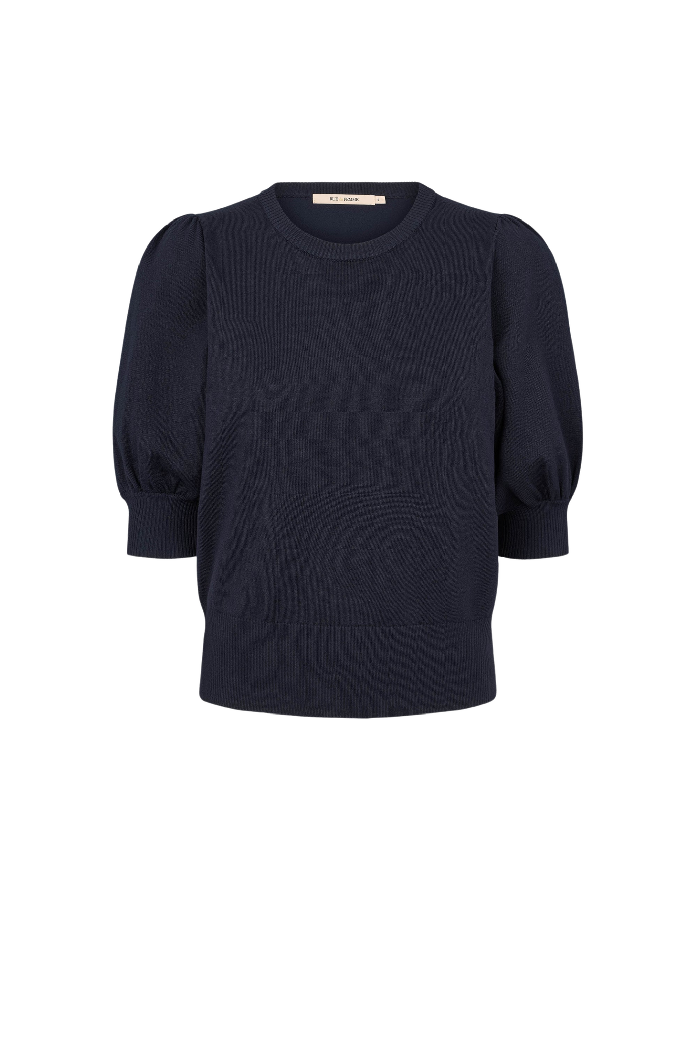 De Rue de Femme Sorrel Knit in Midnight is een elegante, fijngebreide top in een tijdloze donkerblauwe tint. Dit model heeft een klassieke ronde hals en korte pofmouwen die zorgen voor een vrouwelijk en eigentijds silhouet. De brede ribgebreide boorden aan de mouwen en de taille geven de knit een mooie pasvorm en een hoogwaardige afwerking.