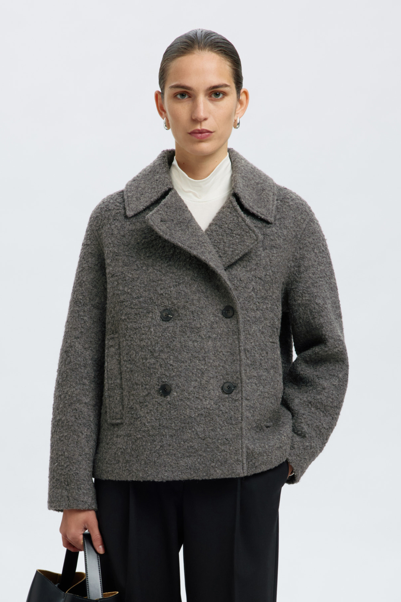 Selected - Alma Boucle Wool Blend Jacket - Medium Grey