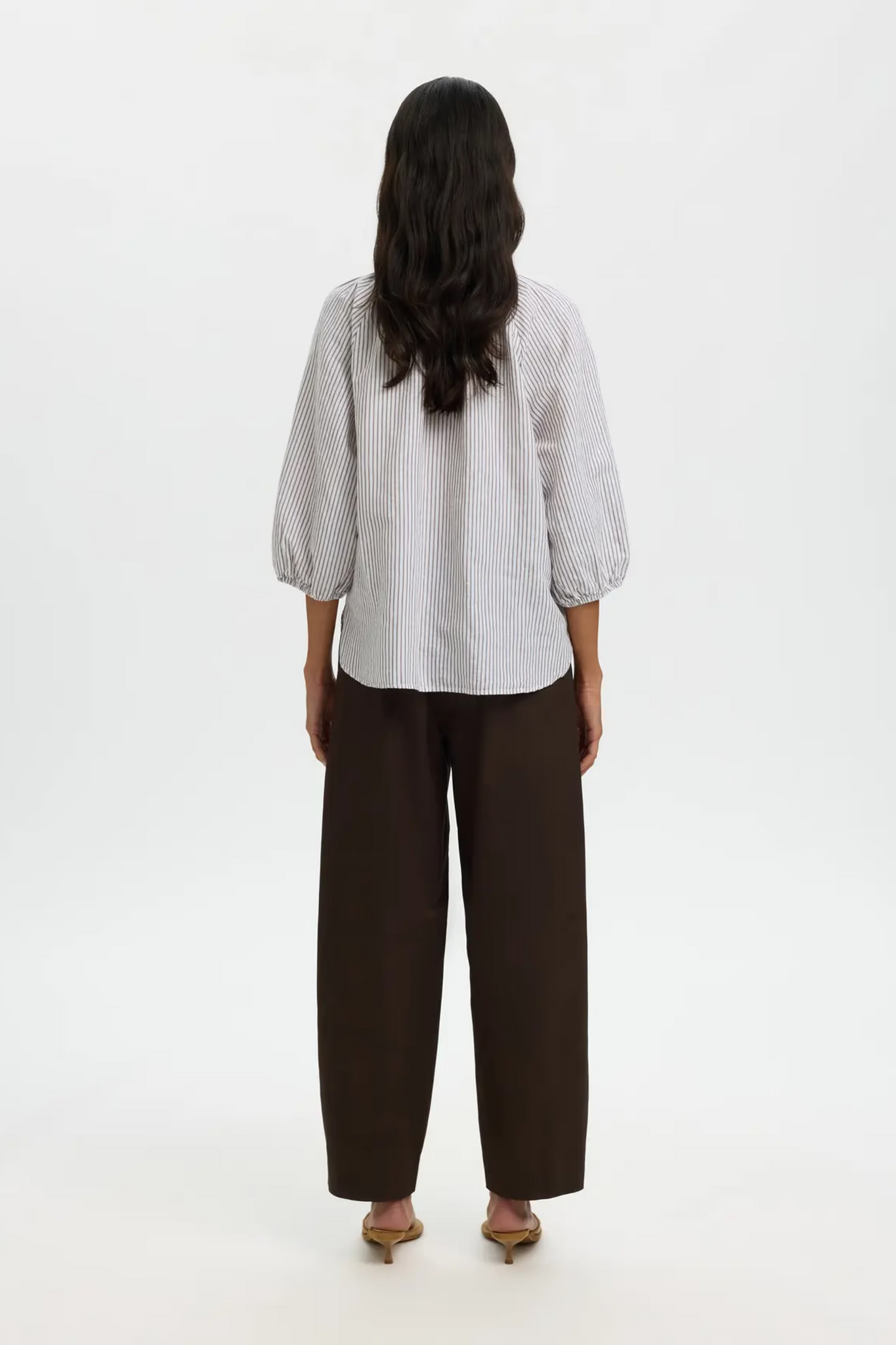 Selected - Cleo Alberta Linen Blend Shirt - White/Chocolate
