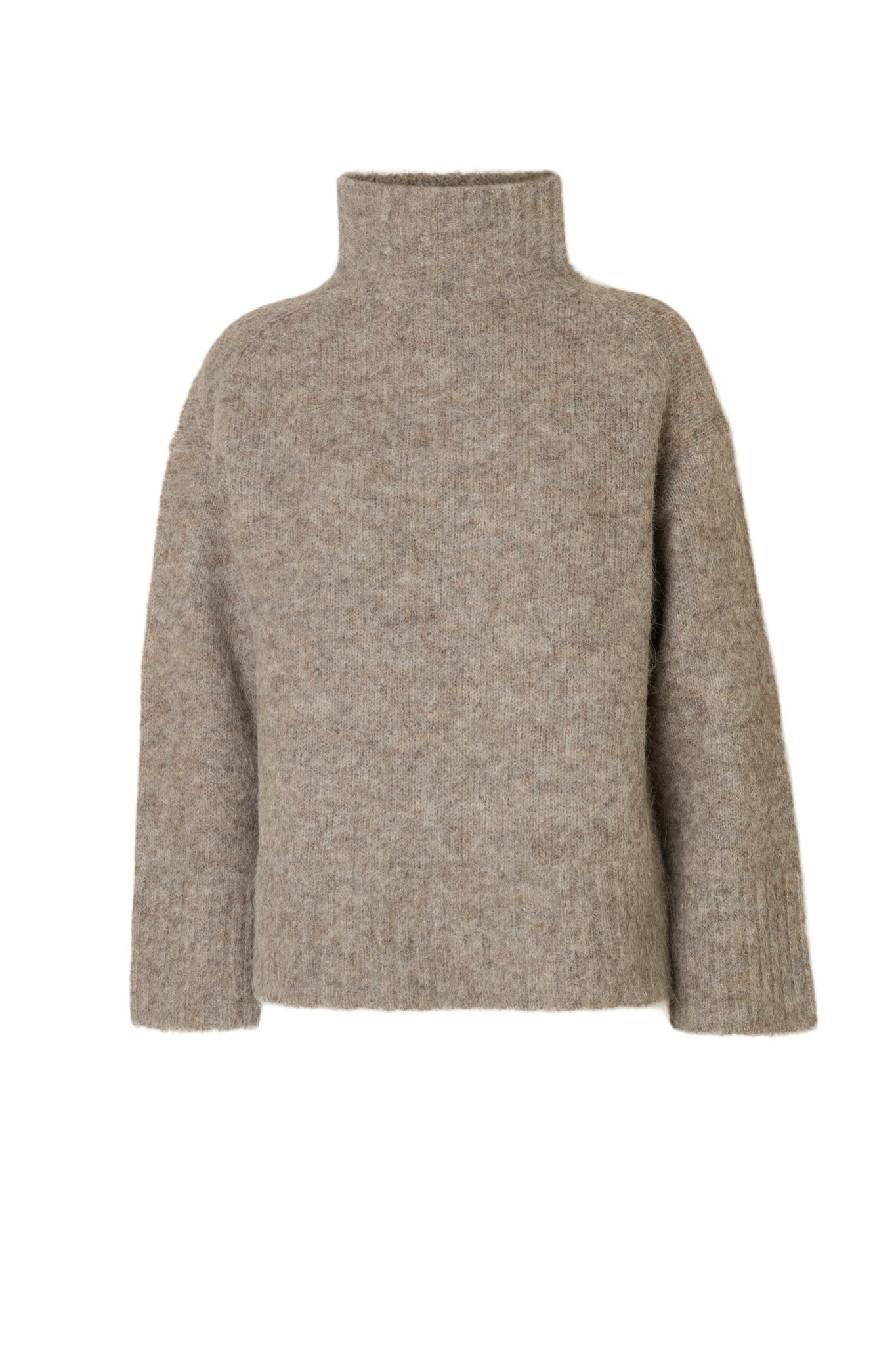 De Gabriella Knit High Neck van Selected is een comfortabele, grof gebreide trui in een 'steel gray' kleur. De trui heeft een hoge opstaande kraag (kol) en een loose fit voor een relaxte uitstraling. De wijde mouwen maken dit item tot een modern en stijlvol basisstuk.
