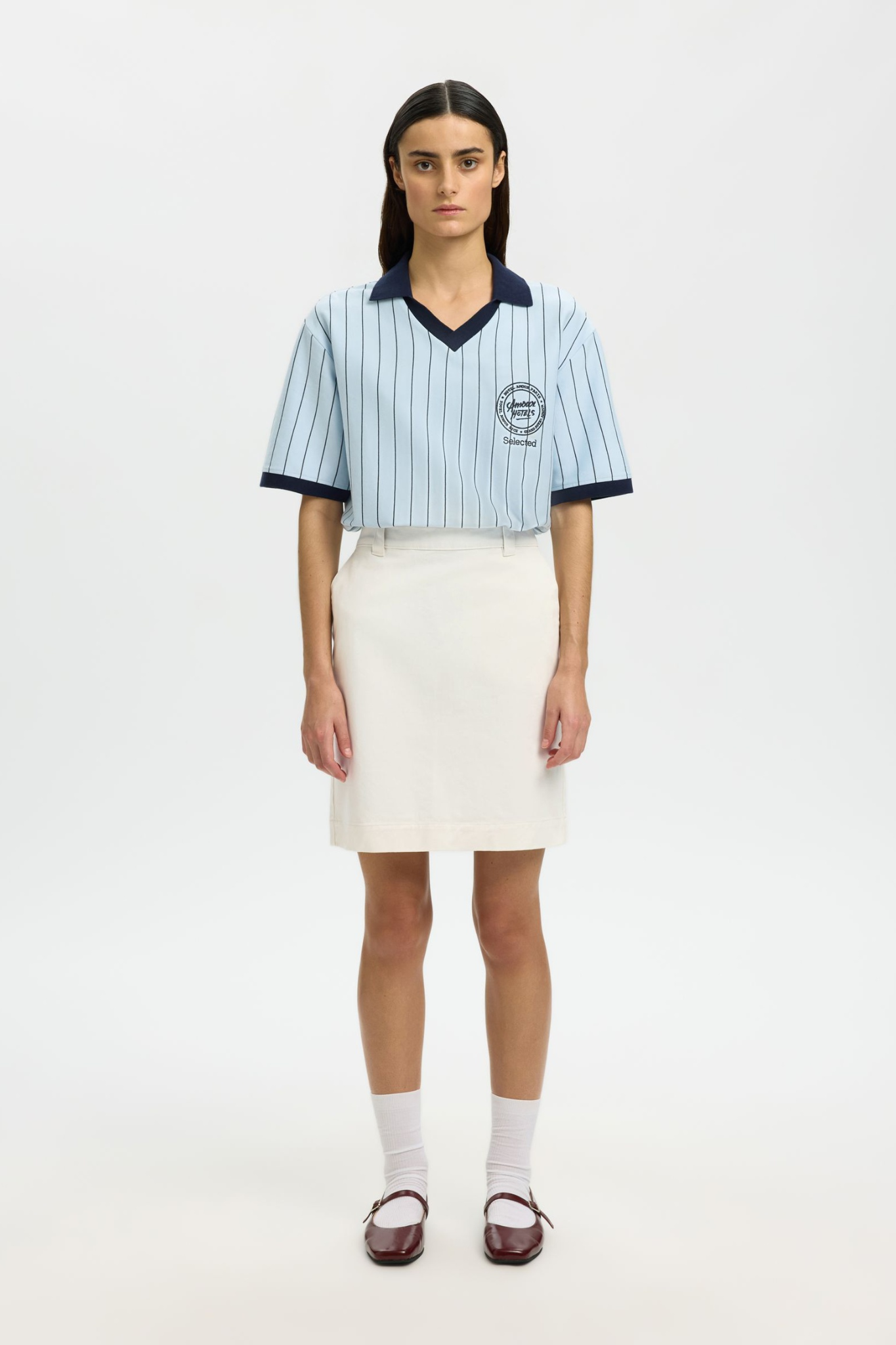 De Selected Hotel Amour Midi Skirt in Egret is een tijdloze denim rok met een cleane, rechte pasvorm. Dit model is vervaardigd uit een stevige katoenmix en valt tot op de knie, wat zorgt voor een klassiek silhouet. De rok is praktisch afgewerkt met riemlussen en een blinde ritssluiting aan de achterzijde, uitgevoerd in een frisse gebroken witte tint die eindeloos te combineren is.