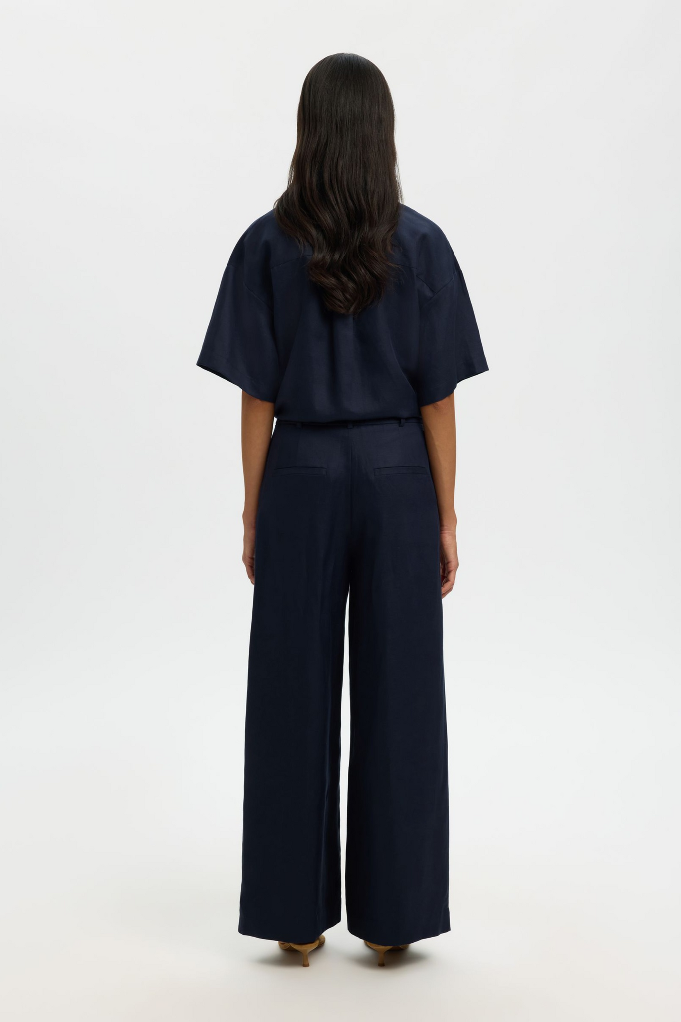 De Selected Lyra 2/4 Boxy Linen Shirt in Dark Sapphire is een stijlvolle, minimalistische blouse met een moderne boxy pasvorm. Dit item is vervaardigd uit een luchtige linnenmix en heeft een elegante V-halskraag met een verborgen doorlopende knoopsluiting voor een cleane look. De blouse is uitgevoerd met driekwart mouwen en een rechte snit, wat in combinatie met de diepblauwe kleur zorgt voor een tijdloze en veelzijdige uitstraling.