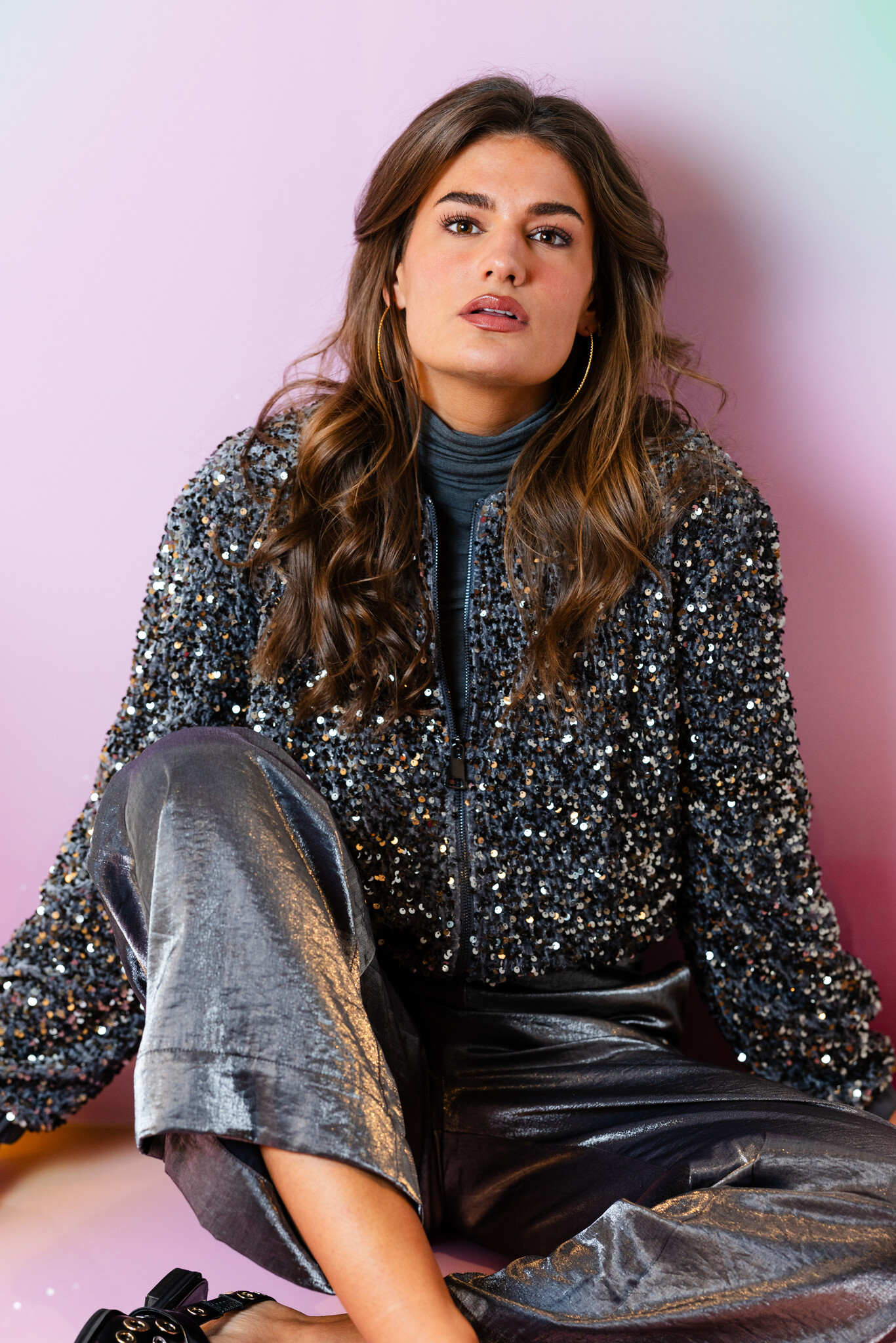 De Margot Wide Leg Pants van Selected in metallic finish geven deze outfit een moderne en opvallende uitstraling. Combineer ze met de Sylvie Turtleneck Pullover van Honnete Atelier in grijs voor comfort en een stijlvolle basislaag. Maak de look compleet met het Jolina Jacket van Freebird, een lichtgewicht blazer die structuur en elegantie toevoegt.