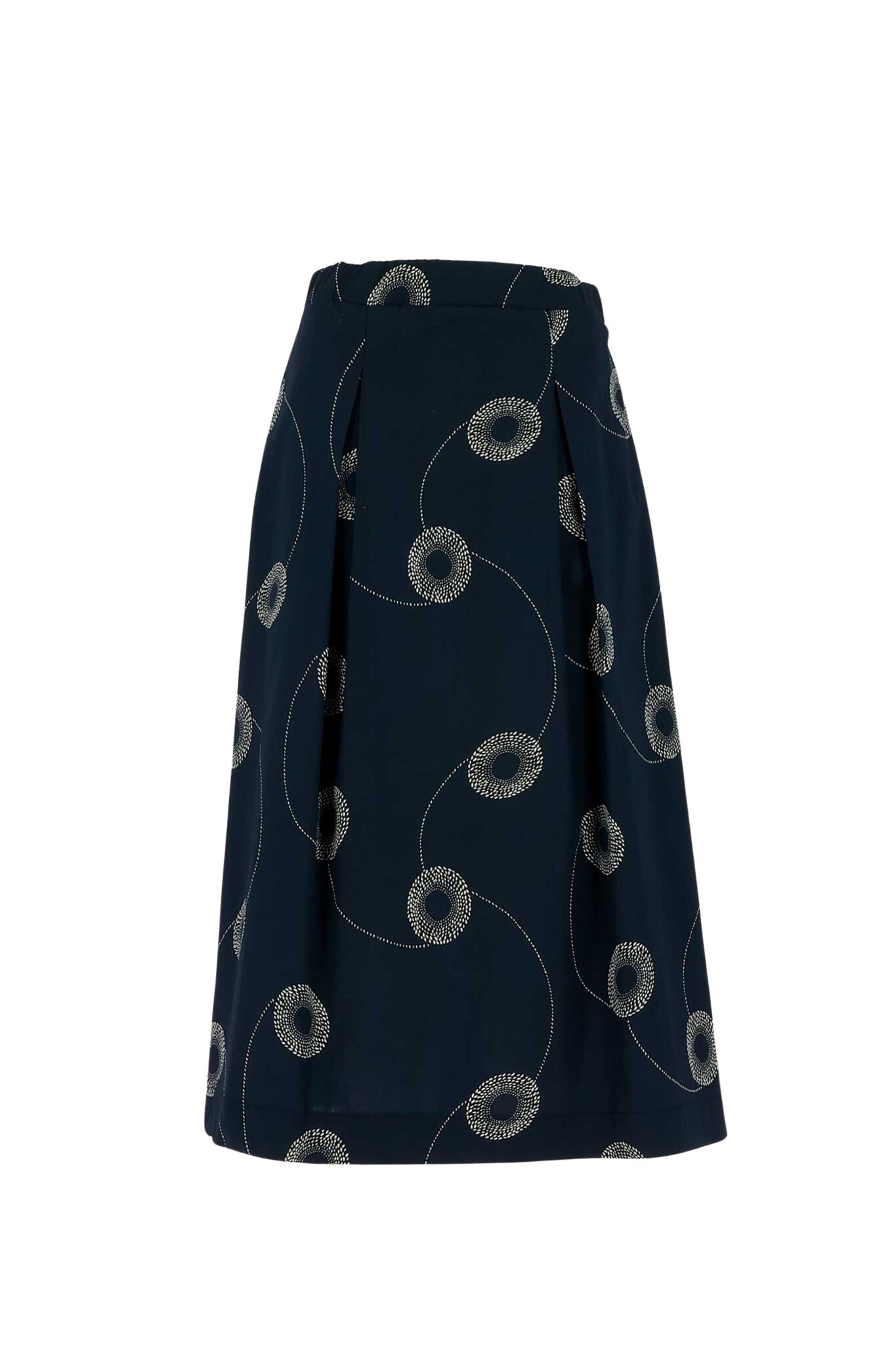 De Signe Nature A-lijn Print Rok in Navy is een vrouwelijke midi-rok met een elegant, uitlopend silhouet. Dit donkerblauwe model is versierd met een contrasterend grafisch lijnenspel en cirkelmotieven die perfect passen bij de bijbehorende print blouse. Dankzij de gladde afwerking en de subtiele plooien bij de tailleband biedt deze rok een stijlvolle en comfortabele pasvorm voor elke gelegenheid.