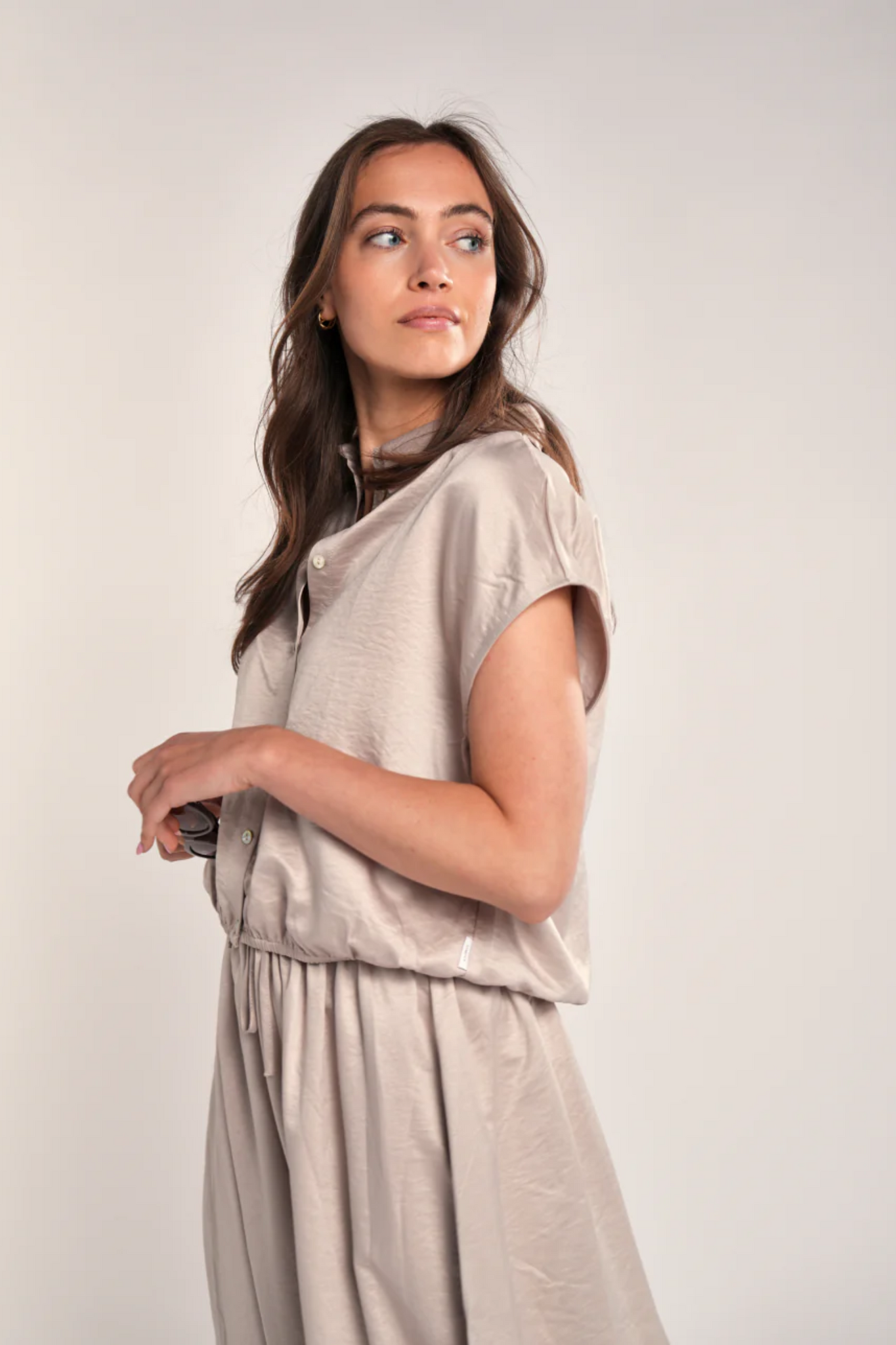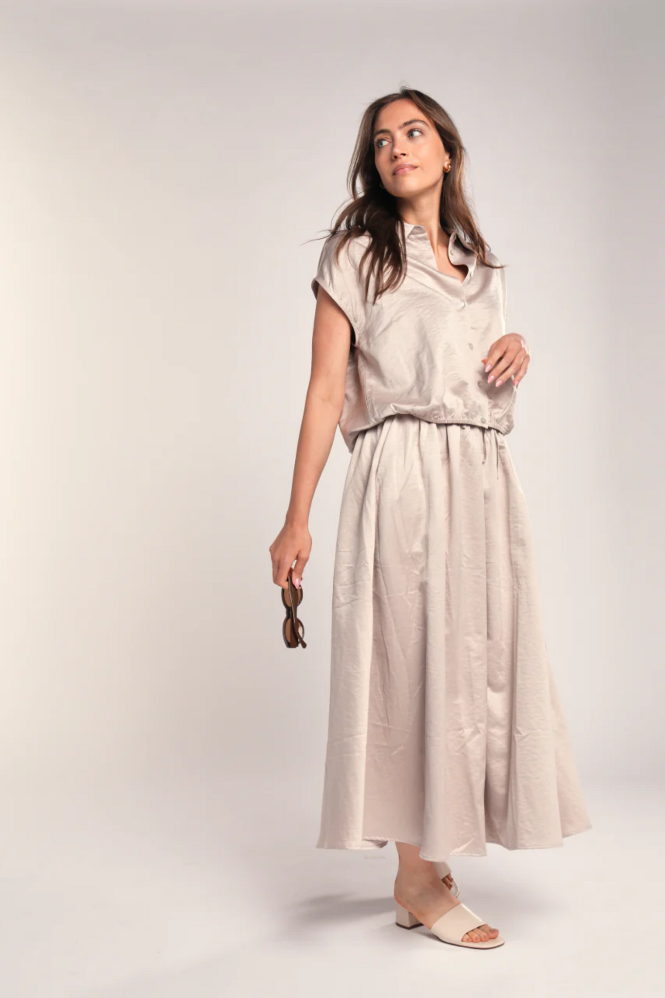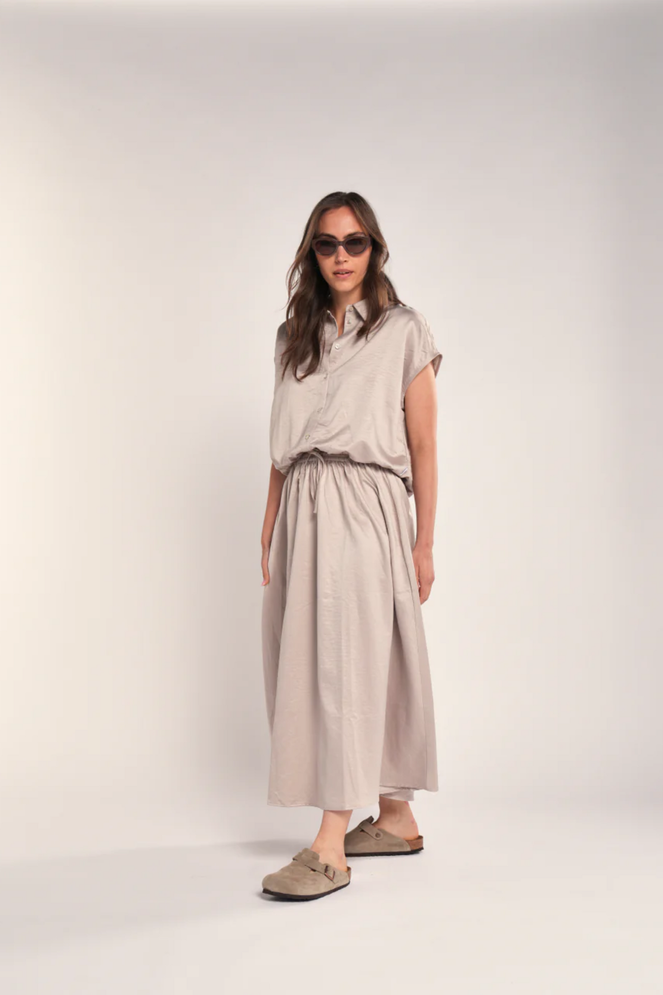 De Simple The Brand Anapi Rok in Sandy is een elegante A-lijn rok met een natuurlijke uitstraling. Dit model valt op kuitlengte en is uitgevoerd in een subtiele zandkleur die zich makkelijk laat combineren. Dankzij de elastische tailleband met een verstelbaar trekkoord biedt de rok een optimaal draagcomfort en een perfecte pasvorm voor elke dag.