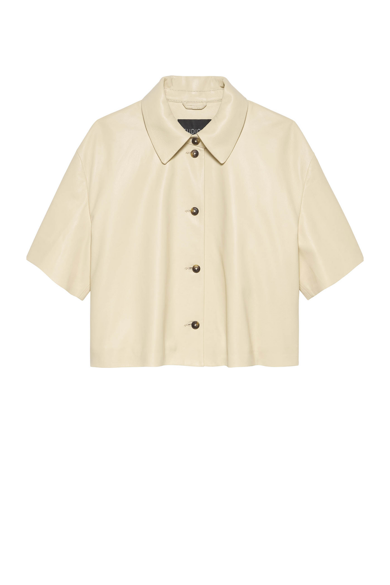 De Eveline Sheep Soft Waxed van Studio AR by Arma is een luxe top in de kleur Butter, gemaakt van zacht leer. De top heeft een blousekraag, korte mouwen en een knoopsluiting aan de voorkant, wat zorgt voor een tijdloze en verfijnde uitstraling. Perfect te combineren met een pantalon of rok voor een stijlvolle outfit.