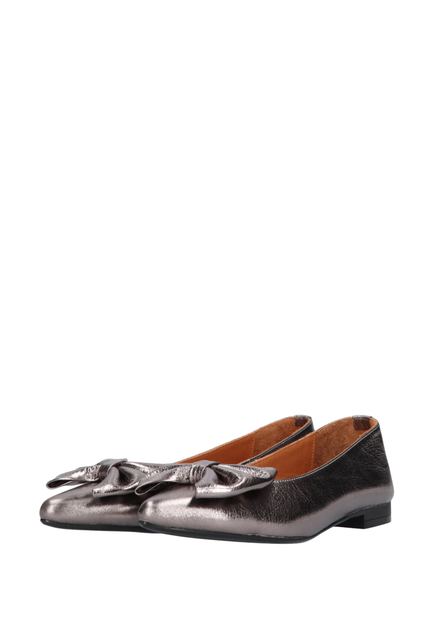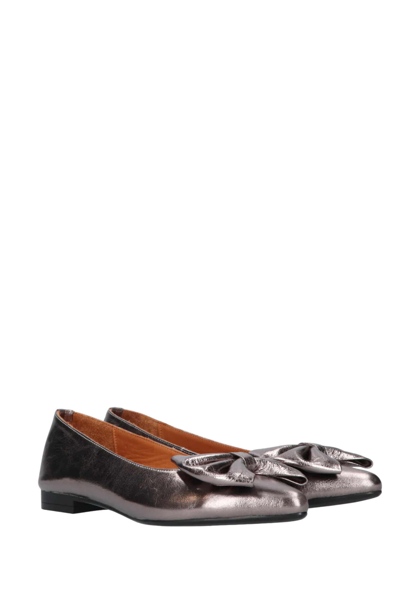 De Duna ballerina van Tango is een elegante platte schoen van goudkleurig leer, afgewerkt met een verfijnd strikdetail op de voorzijde. Dankzij de zachte binnenzool en flexibele zool biedt deze ballerina hoog draagcomfort. Een stijlvolle keuze voor elke gelegenheid.