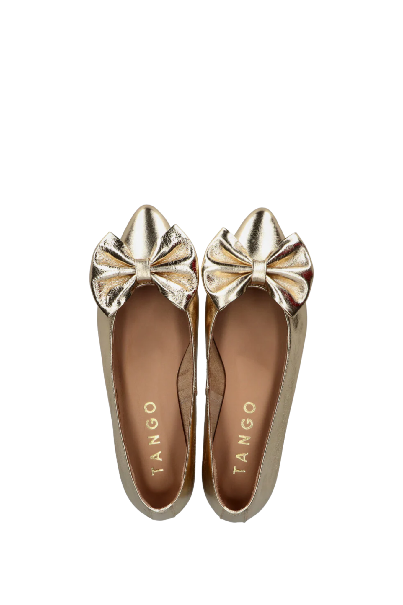 De Duna Platino ballerina’s van Tango in de kleur Gold zijn gemaakt van leer en voorzien van een elegant strikdetail aan de voorkant. Deze schoenen bieden een stijlvolle en comfortabele keuze voor diverse gelegenheden.