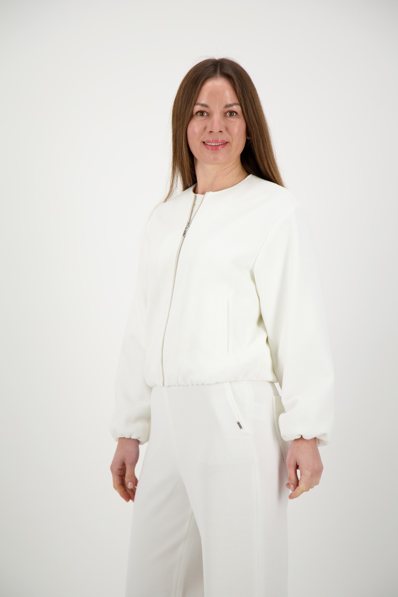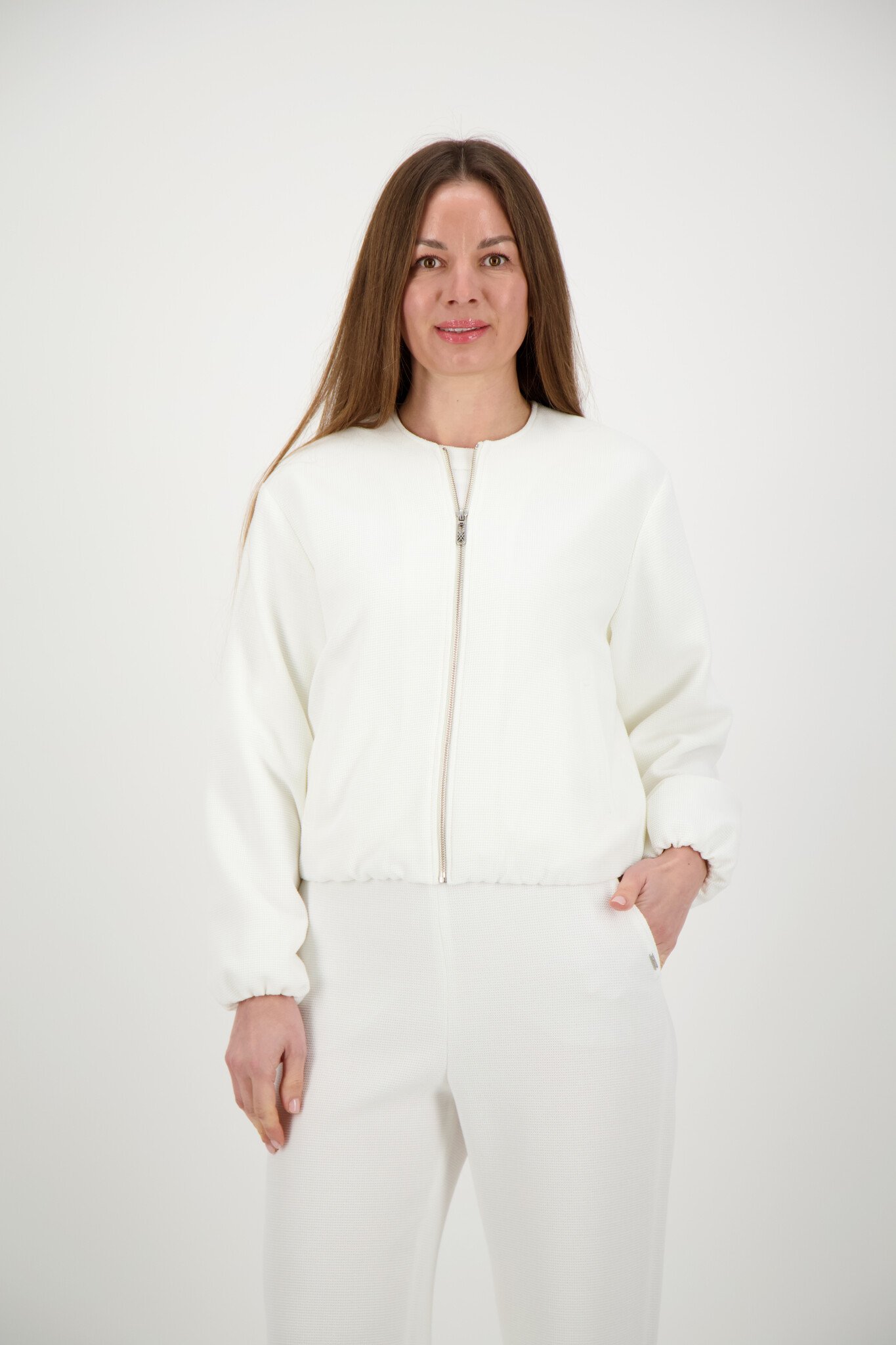 De Xandres Britta Bomberjack jasje in de kleur Mount Blanc is een verzorgd item met een rustige uitstraling. Het model is uitgevoerd met ritssluiting, ronde hals.