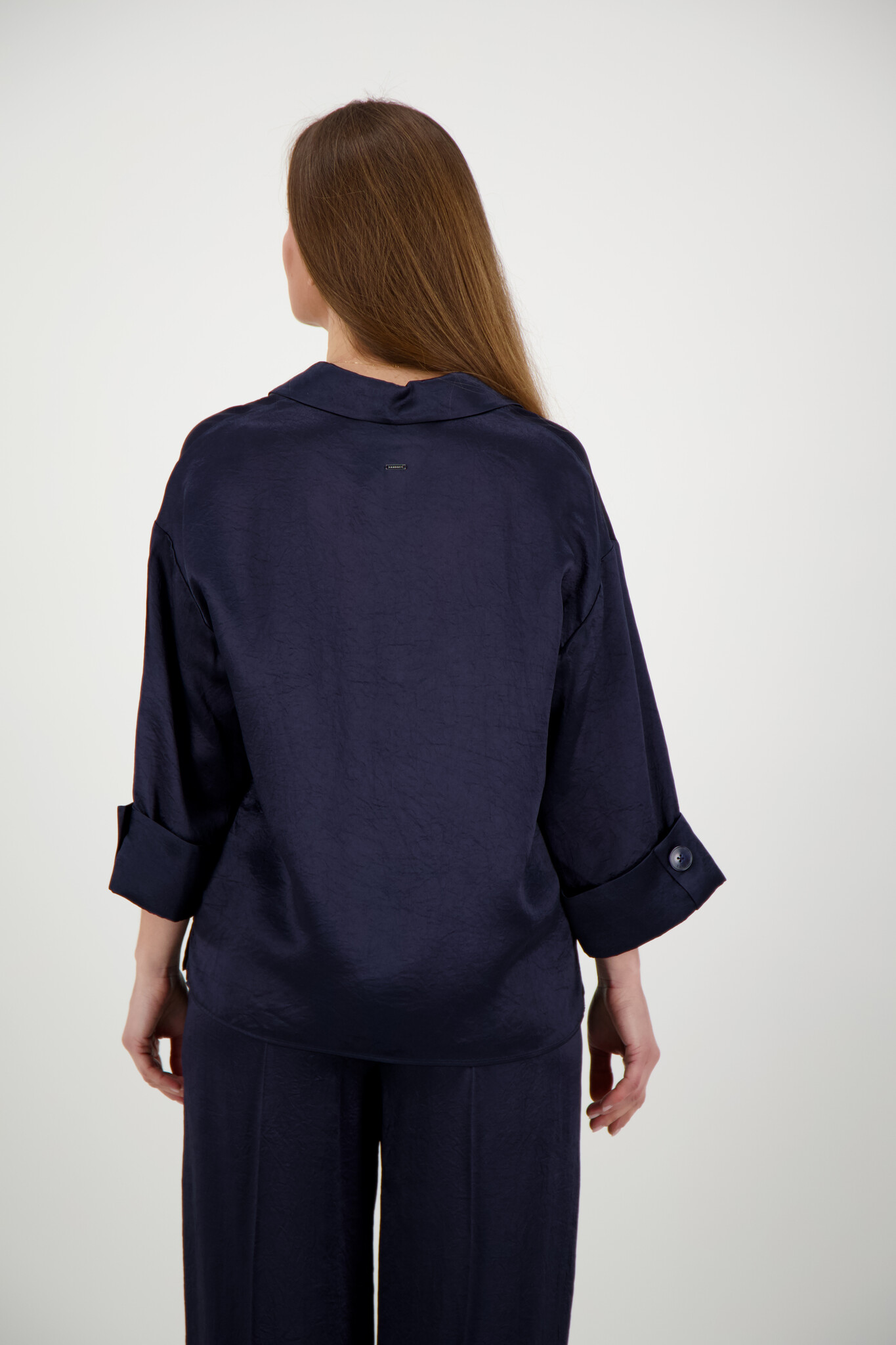De Xandres Halexa Blouse blouse in de kleur Navy is een verzorgd item met een rustige uitstraling. Het model is uitgevoerd met v-hals, 3/4 mouw.