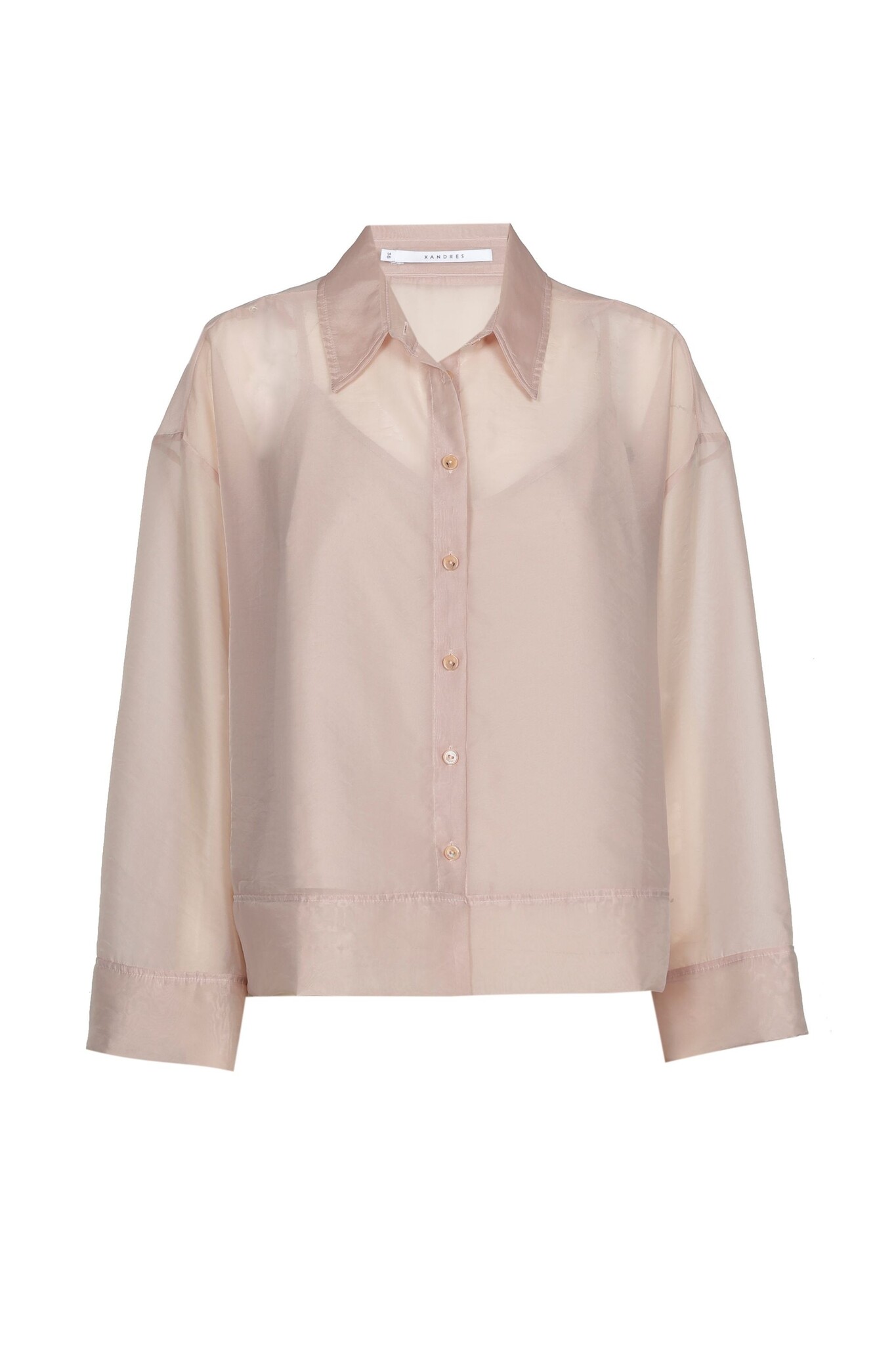 De Xandres Himos Blouse in de kleur Light Tan is een verfijnde, transparante top die luxe en elegantie uitstraalt. Dit model is vervaardigd uit een ragfijne stof met een subtiele glans en wordt geleverd inclusief een bijpassend hemdje voor optimaal draagcomfort. Met zijn klassieke kraag, doorlopende knoopsluiting en rechte pasvorm is deze blouse een tijdloos item dat moeiteloos past in een stijlvolle garderobe.