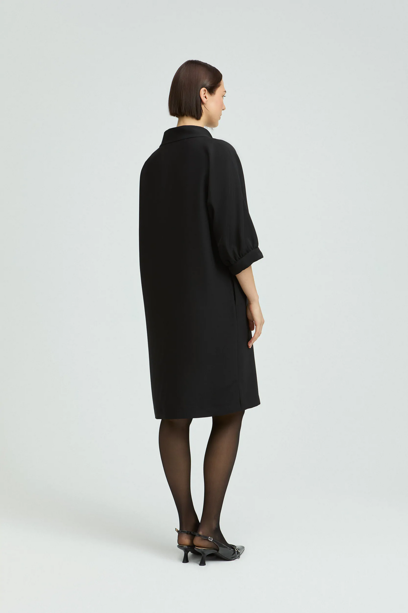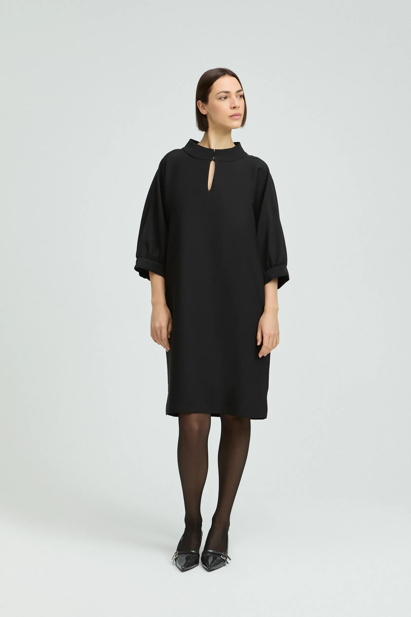 De KAEA jurk van Xandres is een soepelvallende jurk met een opstaande hals en 3/4 mouwen. De jurk heeft een aangesneden mouw en een sluiting met twee knopen vooraan. Een comfortabel model dat gemakkelijk te stylen is voor elke gelegenheid.