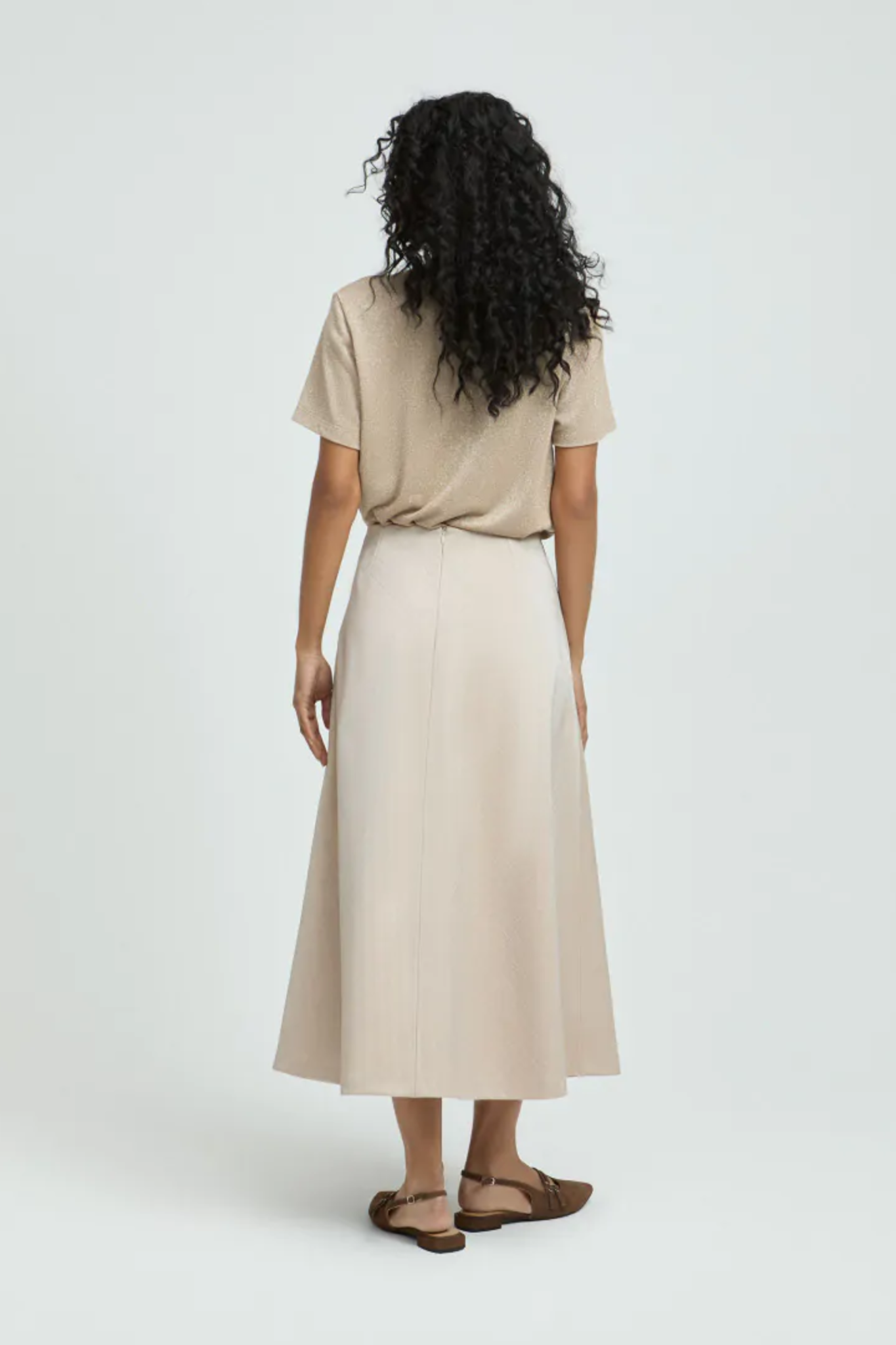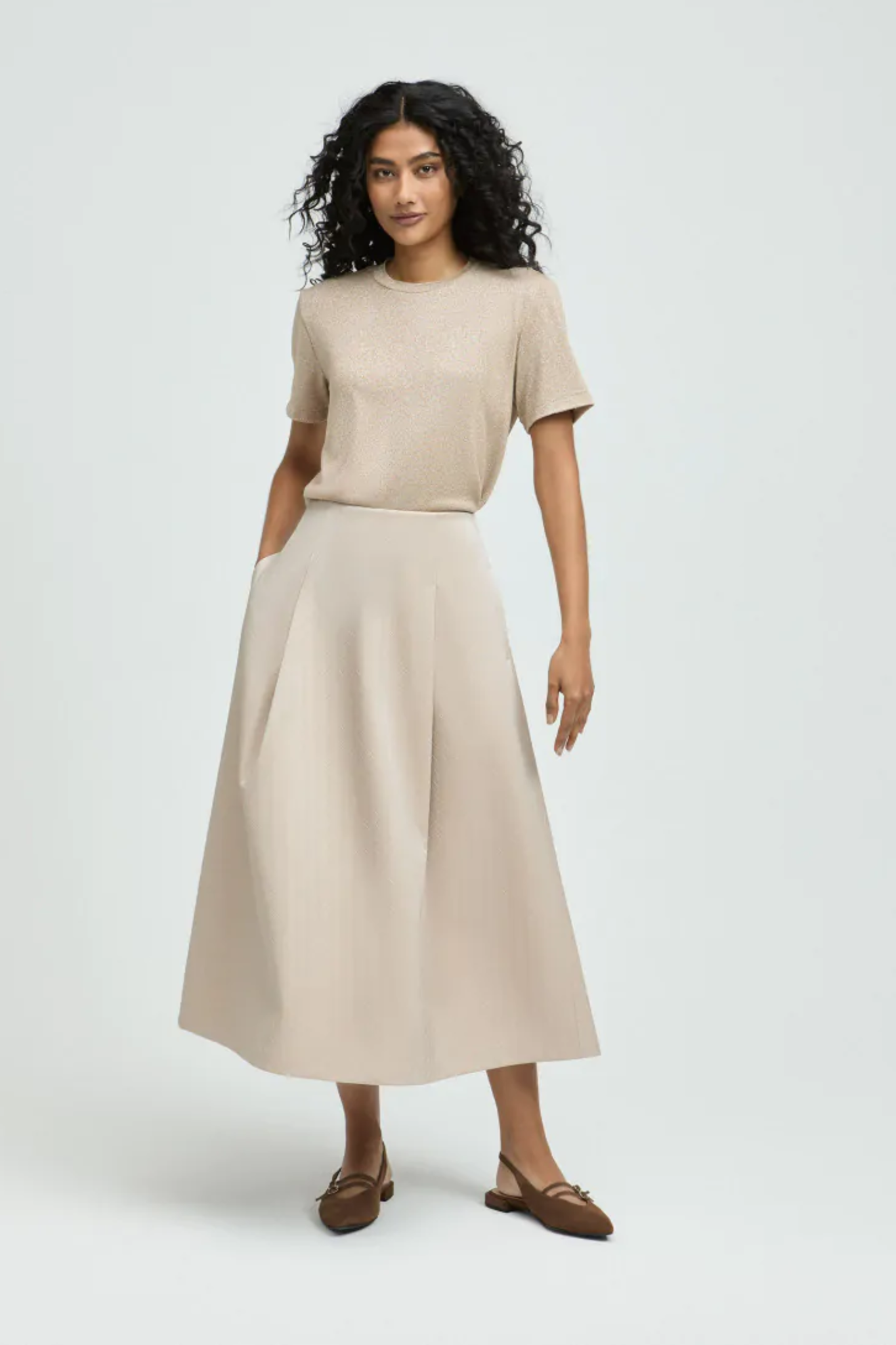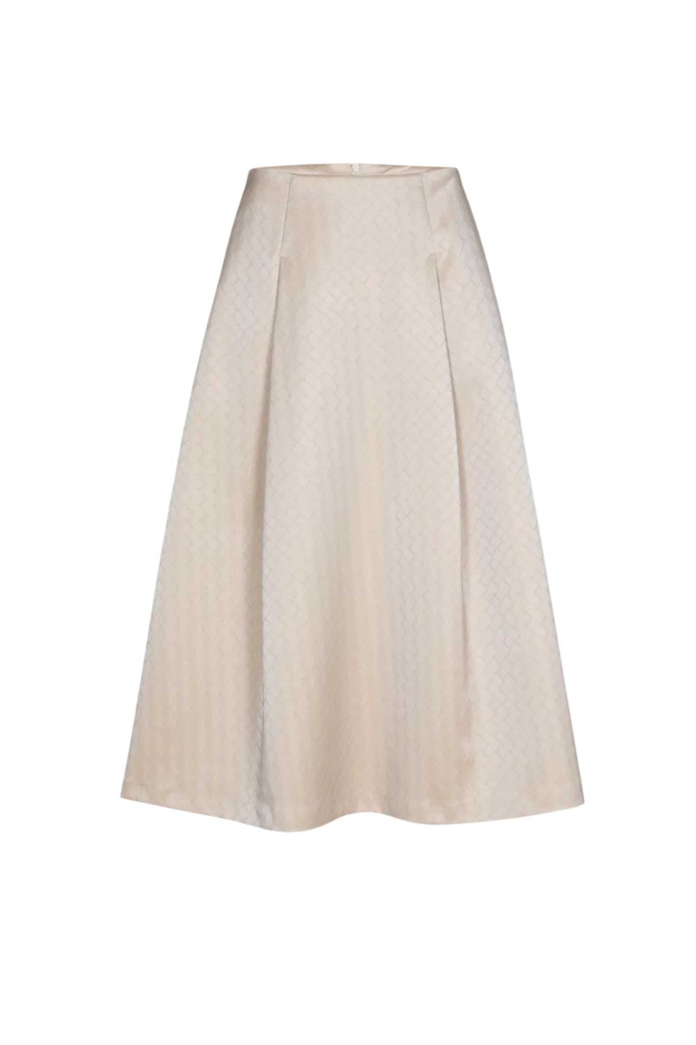 De Raymo rok van Xandres is een lange A-lijn rok uitgevoerd in een subtiel basketweave patroon met een lichte glans. De rok heeft twee detailplooien aan de voorkant, een ritssluiting achteraan en is voorzien van twee praktische steekzakken. Een elegant item in de kleur Almond Milk dat moeiteloos te combineren is met zowel een blouse als een trui.