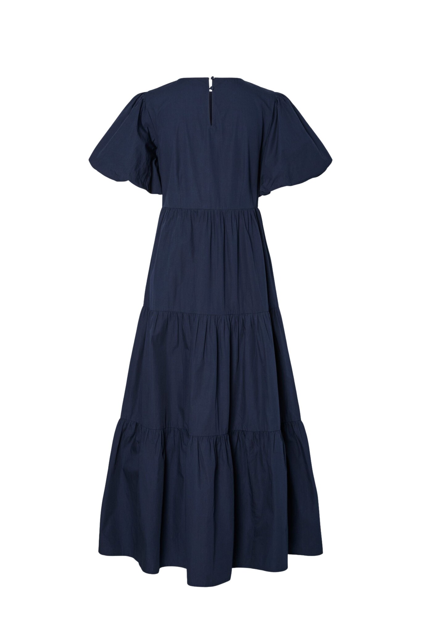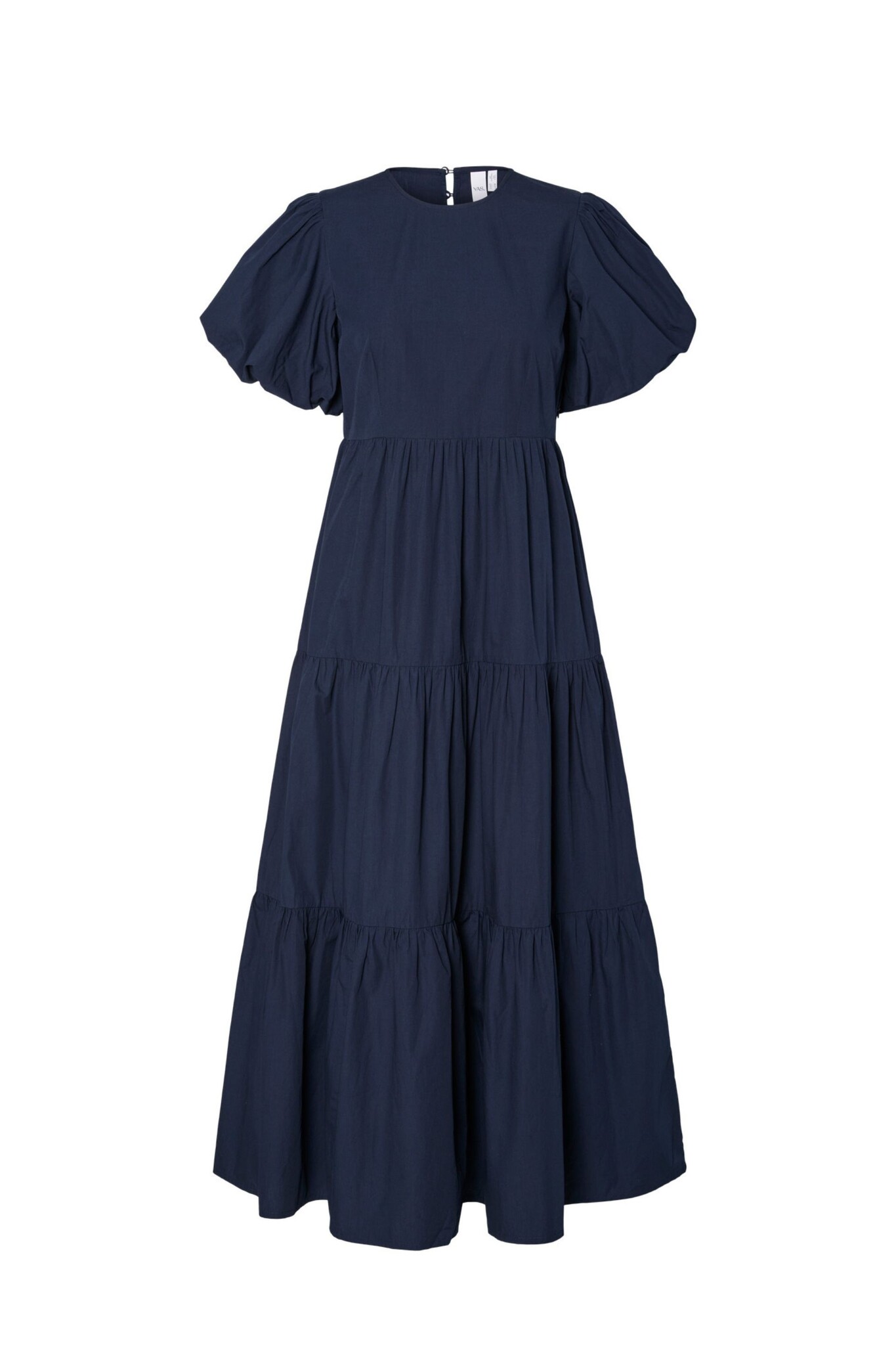 De YAS Colea SS Ankle Dress in Navy is een elegante en volumineuze maxi-jurk die comfort combineert met een krachtig silhouet. Deze jurk is uitgevoerd in een diepe navykleur en valt op door de opvallende, korte pofmouwen die zorgen voor een modern en vrouwelijk accent. Dankzij het gelaagde rokgedeelte en de enkellange pasvorm ontstaat er een prachtige, vloeiende beweging bij elke stap, wat de jurk ideaal maakt voor zowel een casual dag als een zomerse avond.