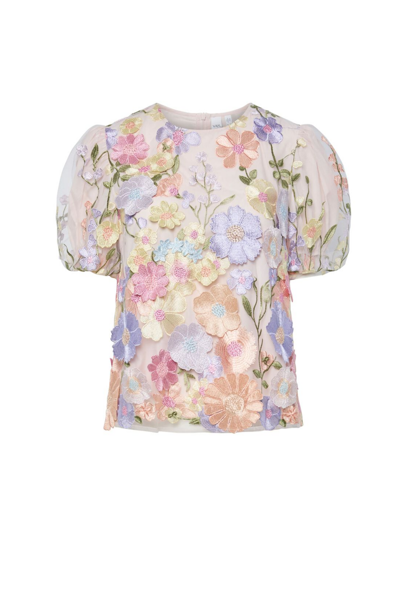 De Flowering Top van YAS in Lavendula is een elegante top met een ronde hals en een blinde ritssluiting. De korte pofmouwen geven een vrouwelijke touch, terwijl het model is uitgevoerd met een ondertop voor extra draagcomfort. Het opengewerkte gaas met geborduurde bloemen in pasteltinten zorgt voor een verfijnde en luchtige afwerking.