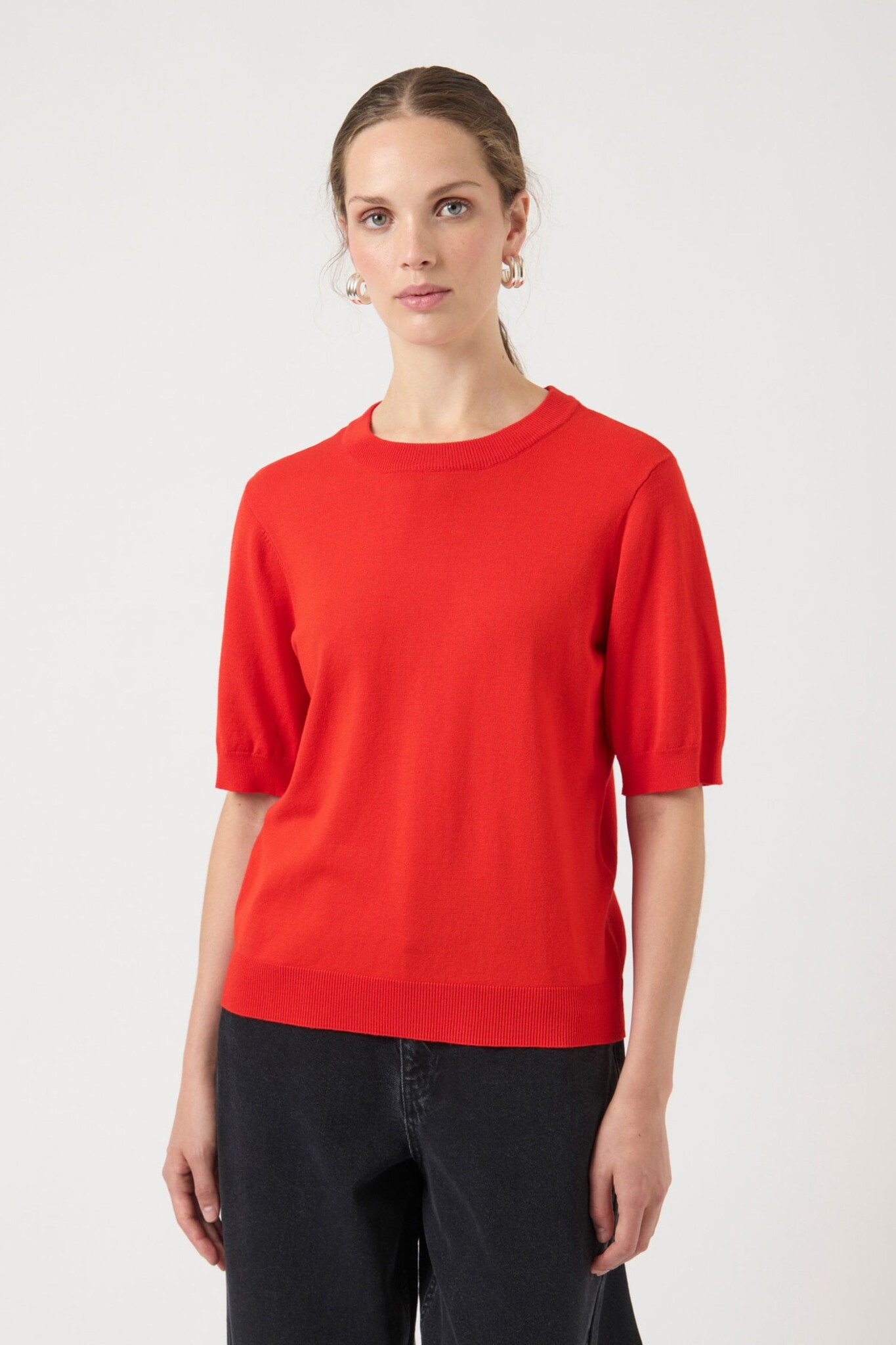 De Lena Knit Pullover van YAS in Fiery Red is een fijngebreide trui met een ronde hals en korte mouwen. De geribde boorden zorgen voor een mooie pasvorm en een verzorgde afwerking. Dankzij het lichte breisel is deze pullover perfect voor het voorjaar of als stijlvolle laag onder een blazer. Combineer met een jeans of rok voor een vrouwelijke, moderne look.