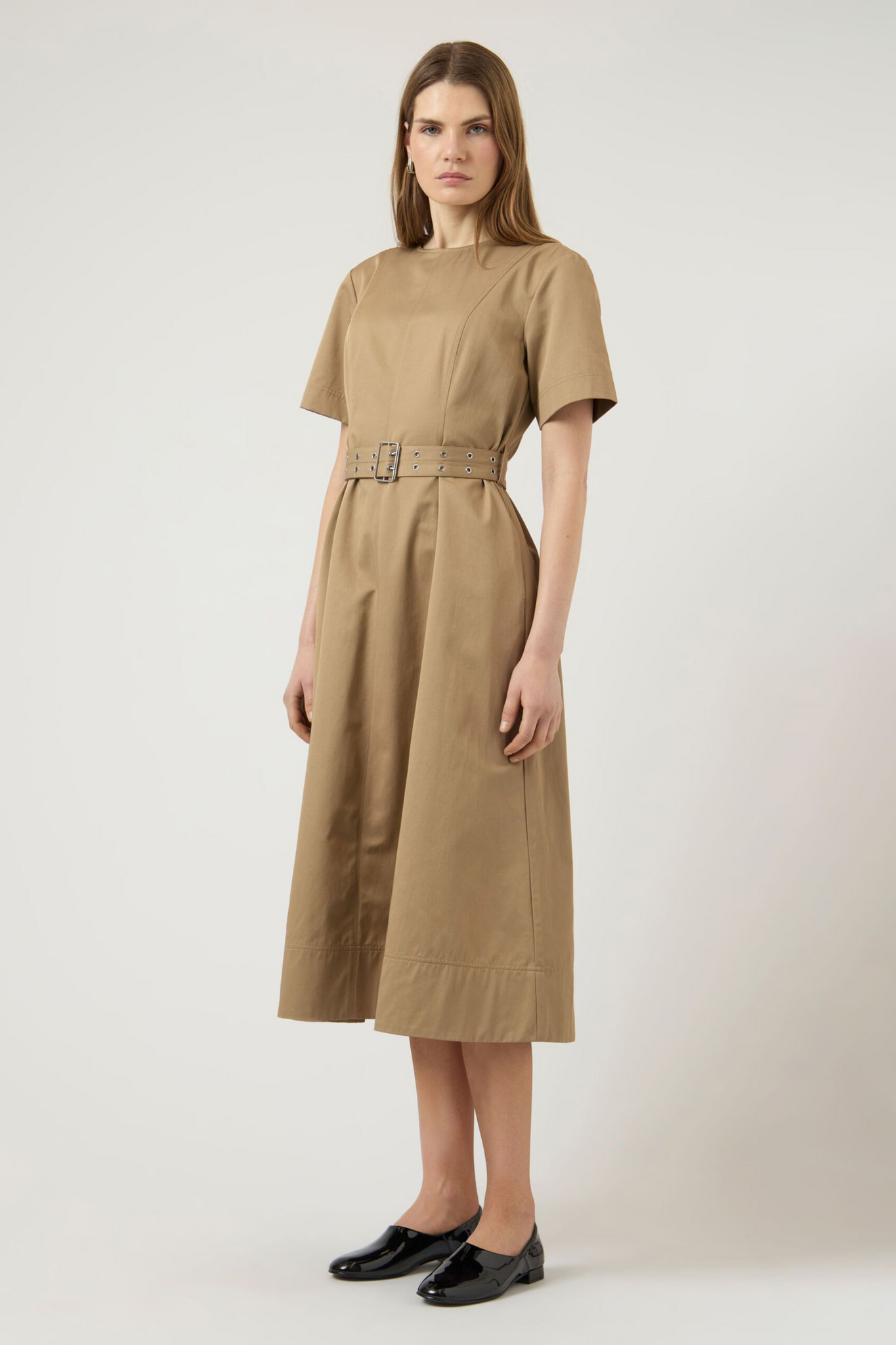 De YAS Timila Maxi-Jurk in Incense is een stijlvolle en gestroomlijnde kuitlange jurk met een klassieke A-lijn rok. Het ontwerp heeft een ingetogen ronde hals, korte mouwen en een opvallend breed ceintuur met gesp om de taille vrouwelijk te accentueren. Deze jurk is aan de achterzijde afgewerkt met een verborgen ritssluiting, wat samen met de subtiele stiknaden zorgt voor een modern en strak silhouet.